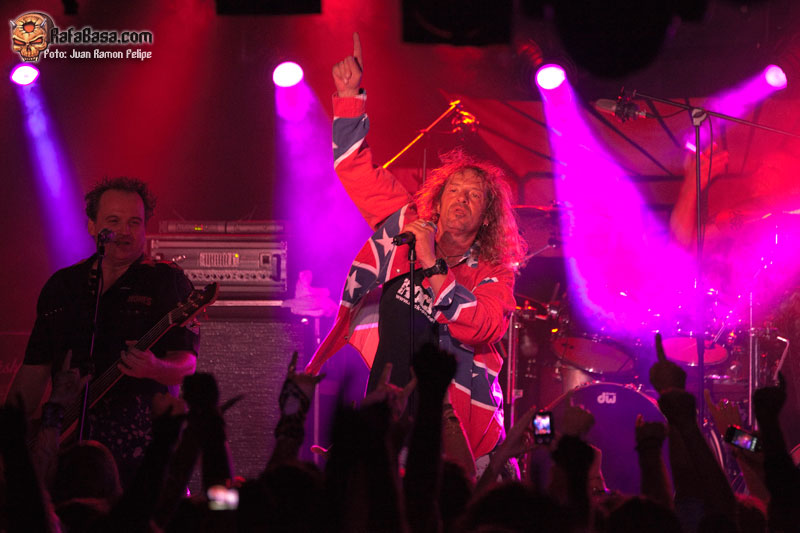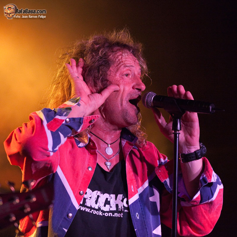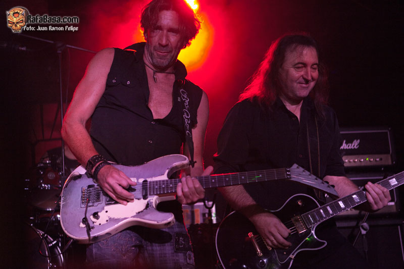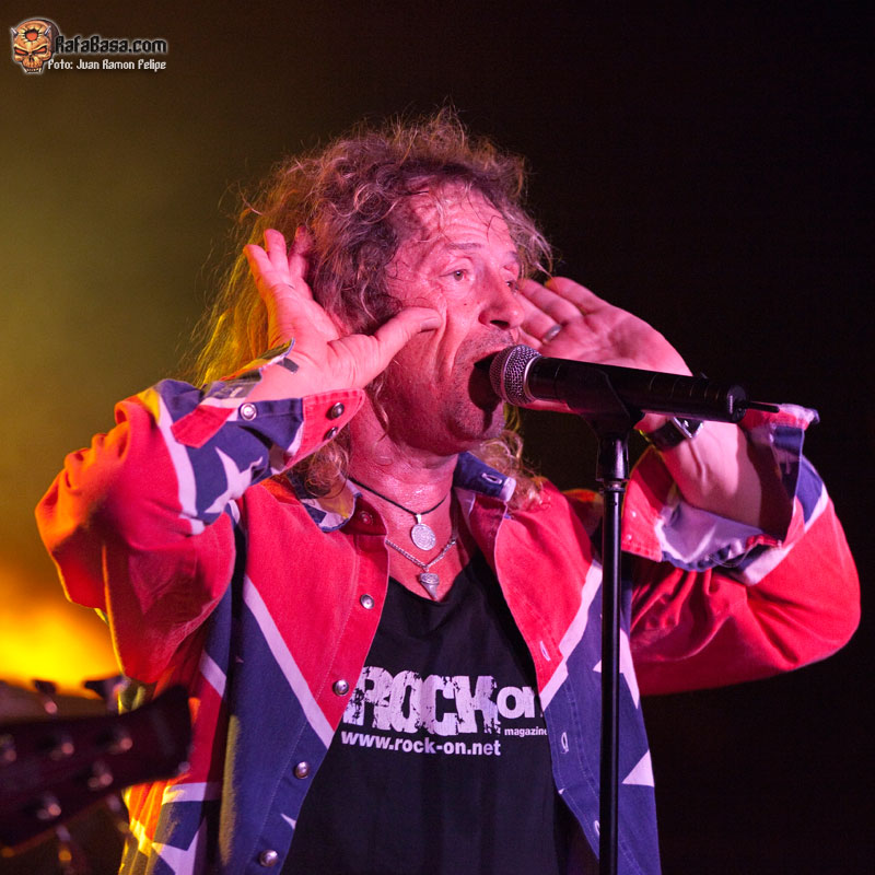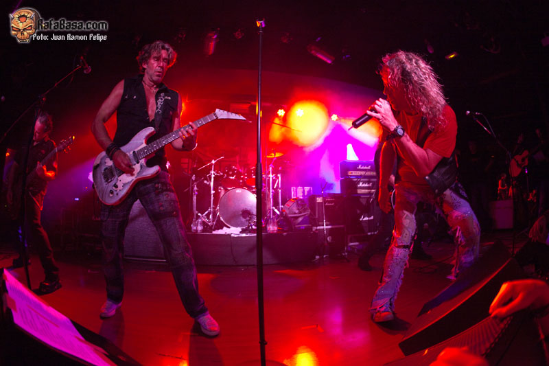 Del resto, destacar los momentos hardroqueros en los que todos coreamos y bailamos muy a gusto clásicos de la talla de "Sweet obssesion", "American nights", "Sword and stone" (de la banda sonora de una película de miedo del 89, "Shocked", como nos comentó Clauss en la presentación) o esos cañonazos que son "Hot to rock" (con el juego de tocar varias veces en inconfundible riff inicial para ponernos los dientes largos) empalmada con "Don’t touch the light" (ambas de su primer trabajo como BONFIRE) o la imprescindible "Ready 4 reaction", con pedacito al final de "Champion", para rematar el concierto antes de los bises. Para cerrar el concierto, imprescindible el momento balada con "You make me feel", preciosa (aunque antes habían tocado la melosa "Give it a try", que quizás algunos hubiéramos preferido escuchar "Who’s fooling who" pero también les quedó muy bien) para cerrar de nuevo de manera 100% hardroquera con "Bang down the door", uno de sus temas más conocidos del "Point Blank" del 89.