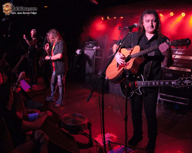 Comentar que BONFIRE se mostraron encantados desde el primer momento de volver a tocar en nuestro país, como nos reiteró el rubio vocalista varias veces durante los primeros temas (de hecho, el tío se pegó unas charlas de impresión en la primera parte del show… pero siendo en todo momento simpático y comunicativo con la gente, nada pesado, vaya). Además, demostraron porqué siguen siendo una formación histórica del estilo, mostrando un nivel, tablas y dominio del escenario que sólo tienen los nombres grandes. También les acompañó el sonido (especialmente me quedó con el espectacular punch de la batería, ¡uff!) y encima fue de esos conciertos en los que la comunión entre banda y público se mantuvo perfecta de principio a fin. La verdad es que había muchas ganas de ver de nuevo a BONFIRE en Madrid y se lo hicimos saber al grupo desde el primer momento… y ellos se mostraron encantadísimos y sin perder la sonrisa en ningún momento (y es que siempre digo que cuando un grupo sonríe y se lo está pasando tan bien encima del escenario, siempre es buena señal).