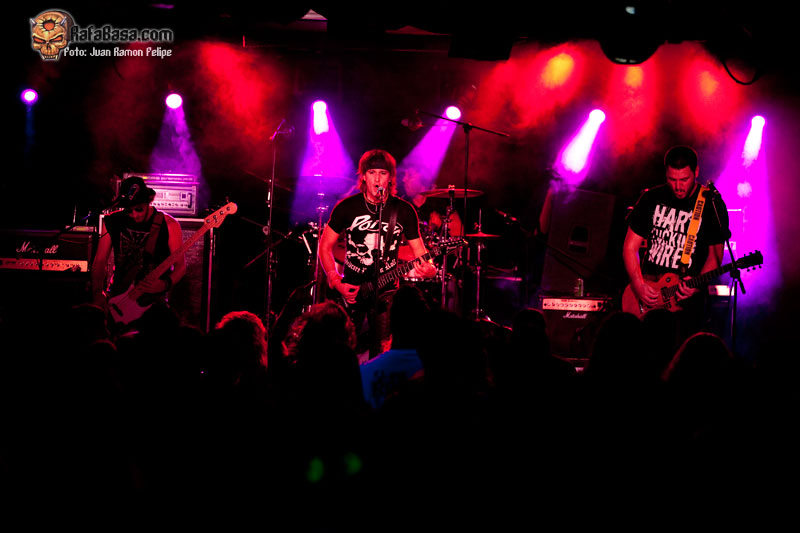 18:15, con algo de retraso sobre el horario previsto y que a medida que transcurrían las actuaciones se fue recuperando, comenzaba el festival de la mano de la banda hispano-argentina HARD-WIRES configurada por Fleky Skull batería, Mark bajista, Luismi guitarra y Kalen vocalista quien en muchos momentos del concierto también tocaba la guitarra. Una banda cuya propuesta pasa por un sonido que mezcla el glam y el hard rock y con influencias de bandas COMO L.A. GUNS, GUNS’N ROSES, MOTLEY CRUE, TYGERTAILZ por momentos, etc y así fueron desgranando temas de sus dos Lps hasta el momento "Fear" (2009) y "The End" (2011) aunque claramente centrados en lo que fue su debut de 2009 animando a los asistentes, no muchos pero que poco a poco fueron sumándose mas a medida que transcurría su actuación.