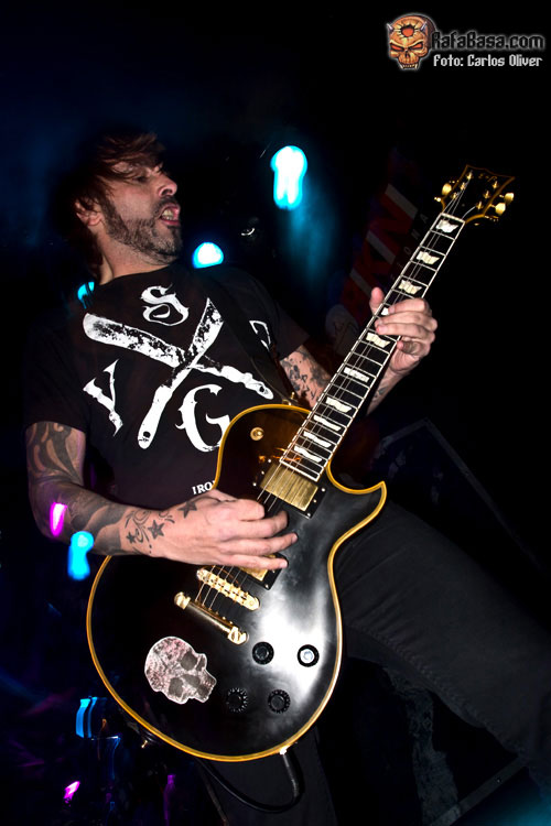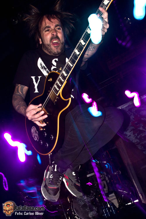La vuelta a "Amnesia" se produjo con "Despertar Sin Vida", canción que nos muestra partes de mucha fuerza y velocidad, contrastando con otras más pausadas y melódicas. Enorme el trabajo aquí de Paco en la batería, que para mi opinión está un poco infravalorado, ya que disco tras disco realiza un gran trabajo, pero que no sé porque no otorga notoriedad a su nombre. Quizás no sea un batería muy espectacular, pero sí que hace cosas bastante originales y para mí eso le aporta un gran valor. Después de "Despertar Sin Vida" y sin apenas pausa, llegaba la gran "Habitación 106" que nos acercaba hacia el final de la primera parte del concierto. La velocidad e intensidad de esta canción servía como un preludio perfecto a la pareja formada por "Egoísmo" e "Irracional", con la gente totalmente enloquecida, siendo uno de los momentos de mayor movimiento entre el público. Pero este movimiento y momento de exaltación no le ocurrió solo a los espectadores, ya que Alberto al finalizar "Irracional" le dio un cabezazo a su micrófono. Este no fue un hecho aislado, ya que no paró de moverse en todo el concierto, animando al público, y formando un fantástico dúo guitarrístico Luís. Se nota complicidad entre ellos y parece que llevan toda la vida tocando juntos, compenetrándose a la perfección.