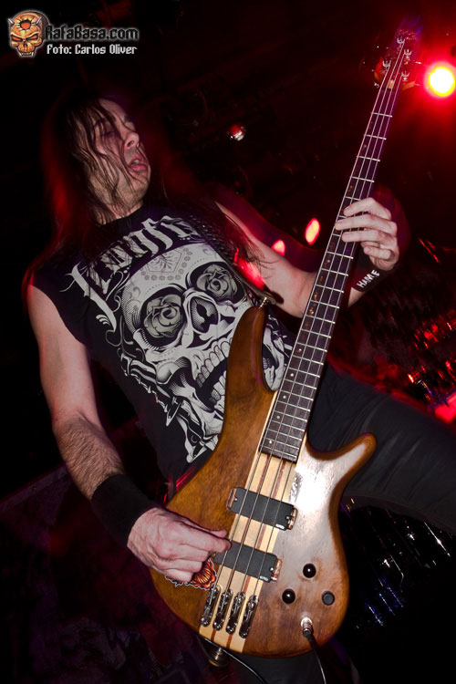 Una vez llegados a este punto, dejaron para el recuerdo uno de los grande momentos del concierto con "En Mi Nombre", que la tocaron rapidísima y en la que el público se volvió loco cantándola y sin parar de moverse en ningún momento. La siguiente canción sirvió un poco para el lucimiento personal, y es que en "Desesperación" hay una parte de bajo muy elaborada, con un pequeño tapping que Álvaro solventó sin ningún problema, demostrando su clase. Este es uno de los muchos puntos a favor que tiene HAMLET, que tratan al bajo como a un instrumento más, sin marginarlo a la labor de acompañamiento, dándole en muchas ocasiones un papel protagonista, cosa que es de agradecer.