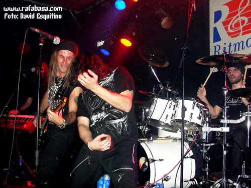 Han empezado a eso de las 21:30 pasadas con una muy cañera "La vida a sangre fría", excelente y que sin duda va a ser de presencia obligada en todos los conciertos de la banda. "Alas rotas" sigue el mismo buen camino, aunque no es tan ruda… Tras el pequeño problemilla con la batería, solventado mientras el resto de la banda improvisaban un poco sobre el escenario a modo de jam espontánea (bueno, y obligada por la situación imprevista), nos presentaban una más comercial "Roma a las puertas", que suena muy bien en directo y que quizás es un corte que sigue el toque pegadizo de "Junio del 44" o canciones en esa onda del primer disco. El primer tema que nos adelantaron hace unos días, "Ana y el verdugo", suena más dura en directo, y se nota que a su vez era uno de los que más conocía el público asistente. Por cierto, Nacho ya había superado la prueba (si es que tenía que superar alguna) con nota suprema, ¡perfecto! Era el momento de hacer un guiño al primer disco con los dos temas que quizás que más han calado entre la gente: "Bosque de hojas muertas" y la citada "Junio del 44" (tras la presentación de la banda por parte de Nacho y Jero). A modo de pequeño bis nos ofrecían "La tempestad", también muy dura, un tema totalmente heavy y con mucha fuerza y velocidad, aunque personalmente me ha llegado menos. Y ya para cerrar, "Él" ponía el punto final haciendo un guiño al power aunque la impronta de Jero de toda la vida aparece bien clavada en ésta (incluso hay más parte de solo de guitarra que quizás es un detalle que había echado en falta por momentos en algunas de las canciones nuevas previas).