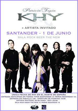 El día 1 de junio Patricia Tapia KHY se acerca a Santander para demostrar en directo la fuerza de "Irrompible". La cita será en la sala "Rock Beer The New "de dicha ciudad. La acompañarán los grupos Krait y Zen. La apertura de puertas será a las 20H. Entradas anticipadas en tiendas Tipo.