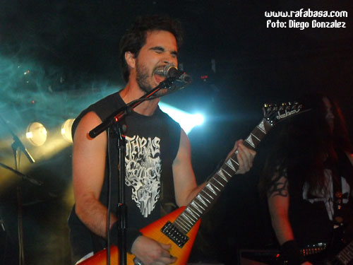 La única banda capitalina que se dio cita en la fiesta fue AGRESIVA. Era la primera vez que tenía la ocasión de verlos con un único guitarrista y la verdad es que ahora entiendo por qué han decidido continuar como cuarteto: Miguel Coello sabe arreglárselas él solito. Presentando su reciente álbum, "Eternal Foe", dieron cancha a temas como "The Glorious Revolution", "The End Of The Game" o "Hell Town", pero tendrían más de una sorpresa preparada para los asistentes. La primera de ellas, la versión de VICIOUS RUMORS que se marcaron de "You Only Live Twice", que les quedó realmente bien y que caló gratamente en unos asistentes muy participativos. "Pale Horse (Red D´Eath)" y "If" sonaban en el grueso de la actuación, demostrando lo bien que les ha quedado ese disco.
