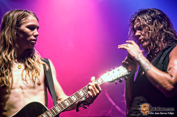 Pero como decíamos, el set estuvo repartido de forma tan equilibrada que rápidamente volvían los temas más celebrados de SKID ROW, en este caso Piece Of Me (donde Sebastian tiró especialmente de reverb, efecto al que recurrió en varias ocasiones a lo largo del concierto) y el megahit 18 & Life cantado por todos y cada uno de los asistentes. Sebastian no sólo invitó a la gente a cantar en los temas más conocidos, sino que también se mostró bastante gracioso y dicharachero, buscando ayuda de traducción entre el público para expresar que "hacía un calor de cojones" o para dar las "gracias por 25 años de rock’n’roll".