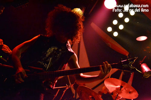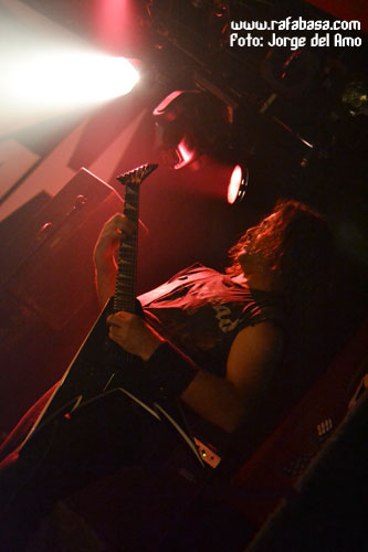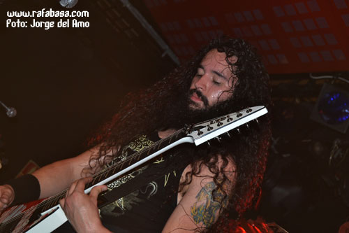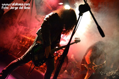 El quinteto repasó su recién editada maqueta "Necrometal" acompañada por algunas versiones, "Under The Guillotine" de KREATOR y "Black Magic" de SLAYER concretamente, y me quedé gratamente sorprendido al ver que el grupo había mejorado notablemente desde su debut en directo en la sala Excálibur hacía más o menos un mes. Sonaron muy contundentes y compactos, y su cantante Ares (ex- WOLFENCROSS, GREEN FLY), demostró ser un gran frontman, siempre al frente de la banda y animando al público.