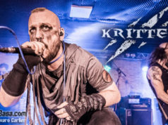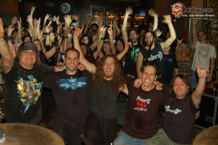 ETERNITY salieron poco después como un huracán con Sangre Mortal y Mare Nostrum dos clásicos ya en el repertorio de los maños que todos los presentes conocíamos y acompañamos cantándolos en todo momento. Un sonido poderoso e impoluto hacía que disfrutáramos más si cabe con una banda a la que teníamos ganas, pues había pasado alrededor de dos años desde la última vez que pudimos verlos en directo, y que se lo han estado currando de lujo, pues no se pudo apreciar una sola fisura en un engranaje perfecto en esa fusión de fuerza y melodía los otrora tildados como los pioneros del denominado metal romántico, algo que encaja perfectamente con temas como el siguiente en caer, que sería Por Siempre Jamás, otro gran tema que la gente sabía de cabo a rabo, pero que volviendo al tema de las etiquetas, decía que deberían de cambiarles, pues los nuevos temas poseen unas letras de lo más rabiosas que poco o nada tienen de románticas, como es el caso de Asesinos De La Verdad, tema que abre su nueva obra y que dedicaron con todo el “cariño” del mundo al actual presidente del gobierno, y para el que contaron con la colaboración a las voces de Diego, vocalista de otra de las bandas mañas en constante ascenso como son EVERNIGHT, que hizo una demostración de capacidad vocal enorme, llegando a unos agudos que erizaban el pelo.