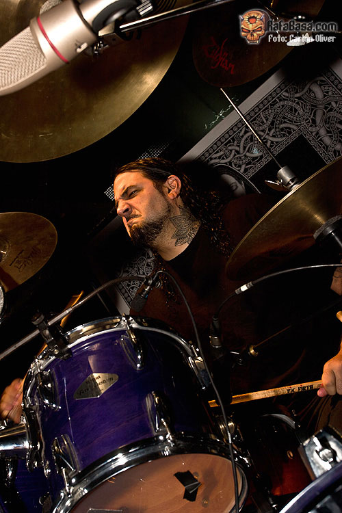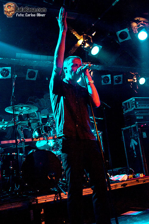 Con un escenario sumido en la penumbra, con la batería de Martin López ocupando un lugar destacado en primera línea, flanqueando la parte derecha, el show se iniciaba de igual forma que arranca su disco, con la tranquila y ambiental "Fraktal", que nos envolvía con su manto introspectivo antes de dejar paso a "Fraccions" que con su repetitivo riff inicial nos conducía a través de enrevesados desarrollos rítmicos, que se veían rematados por la portentosa voz de Joel Ekelöf, todo un descubrimiento como vocalista y frontman, que nos guiaba a través de una composición densa e intensa, que se cerró con la interpretación a capela de la parte final del tema, lo que provoco una calurosa acogida por parte de un público que no era desconocedor de la propuesta de SOEN. Un escueto "We are Soen", fue la sobria introducción al siguiente tema de la noche "Delenda", con una sonoridad más contundente, que sirvió para corroborar la sensación inicial, de que si bien, en estudio los temas de SOEN, suenan extremadamente técnicos y pulidos, es en directo donde estos dan su auténtica medida, ganando en potencia, lo que les confiere una nueva dimensión.