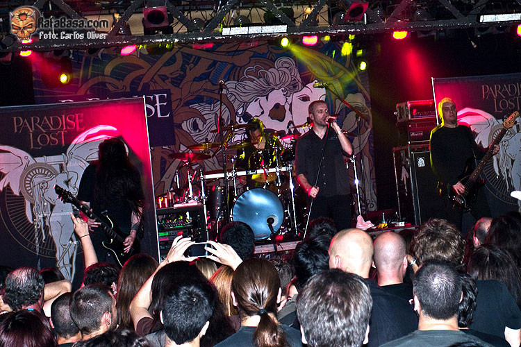 Después de publicar la primavera pasada su último trabajo "Tragic Idol", y de un par de incursiones en nuestro país, en el marco de los festivales veraniegos, (Sonisphere y Costa De fuego), el quinteto de Halifax, regresaba en esta ocasión, a la intimidad de una sala más pequeña para liderar su propio show, en un entorno más acorde con su propuesta musical. Si ya con el citado "Tragic Idol" habían conseguido reafirmar su vuelta a los sonidos más netamente metálicos, dejando de lado las propuestas más experimentales y electrónicas de trabajos como "Host" o "Believe In Nothing", PARADISE LOST volvían a la Ciudad Condal dispuestos a ratificar las buenas impresiones de sus más recientes lanzamientos, con su formación de gala, ya que en su anterior visita de 2009, presentando "Faith Divides Us- Death Unites Us", su guitarrista Greg Mackintosh tuvo que ser sustituido por Milly Evans.