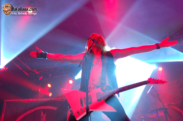 Lo mismo puedo decir de ORDEN OGAN, aunque estos pueden tener una pizca más de personalidad. También ellos visten de curiosa manera, en este caso con unos haraposos trajes. Tanto es así que el neumático en el hombro derecho de guitarrista y vocalista casi pasa desapercibido. Tuvieron un poco más de tiempo que sus predecesores, aunque también fue una actuación bastante fugaz, con tan solo 7 temas en el repertorio. Pese a ello la banda supo dar un repaso a sus cuatro discos editados hasta la fecha.