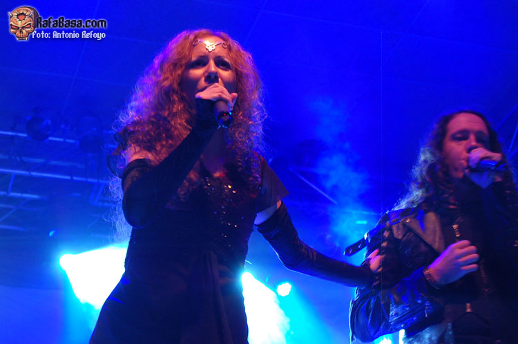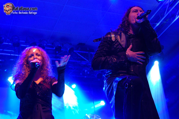 Espectacular fue también la presencia y la voz de Sassy Bernert. La vocalista alemana que colabora en "Ascending To Infinity", disco que nos presentaban esta noche, apareció en varios momentos del show, marcándose unos duetos inmejorables con un Alessandro Conti pleno de voz. Su registro tiene los límites a alturas insospechadas, y aunque en comparación a Fabo Lione este puede eludir más los tonos graves, es capaz de hacer volar su voz por encima de orquestaciones con una potencia y un chorro vocal inagotable.