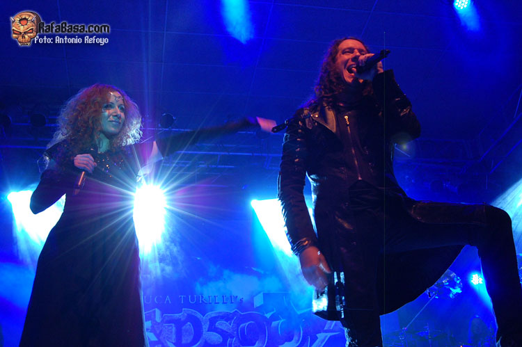 También aliciente es tener enfrente a un guitarrista que ha marcado una época en los últimos 15 años. En ese periodo son muchos los discos que ha creado Luca Turilli bajo la denominación de RHAPSODY, posteriormente RHAPSODY OF FIRE, pero también en solitario. Aparte de presentar esta nueva obra de una nueva etapa, que no se si dividirá a los fans o les hará aprovechar el contar con dos bandas que les ofrecerán discos y conciertos a su gusto, el repertorio contó con buena representación de esos otros trabajos editados bajo su propio nombre. Para dar muestra de lo que nos ofreció en solitario en unos trabajos que también poseen la marca y la calidad del guitarrista italiano, nos desgranaron piezas como "Demonheart".