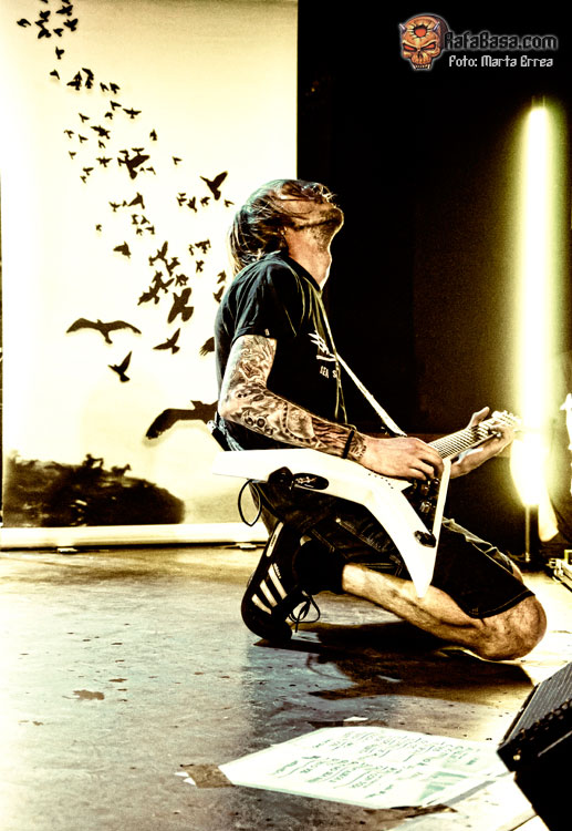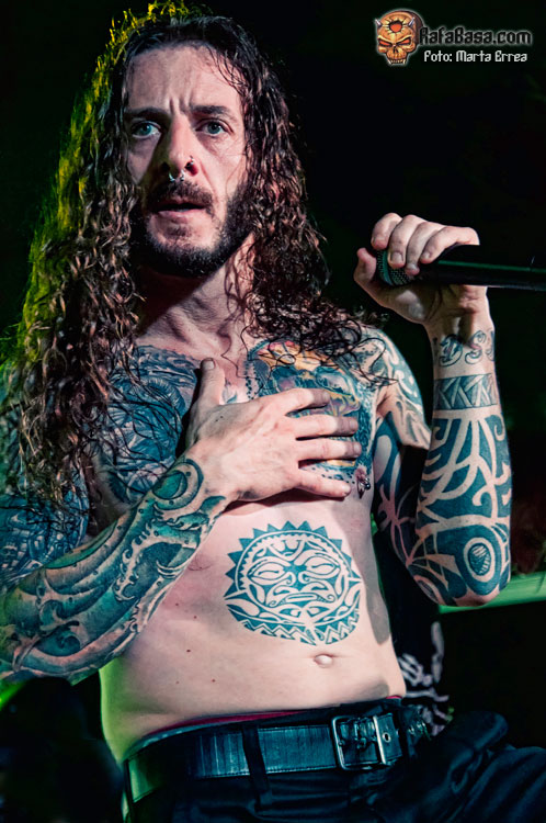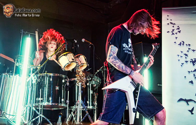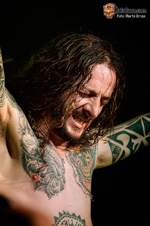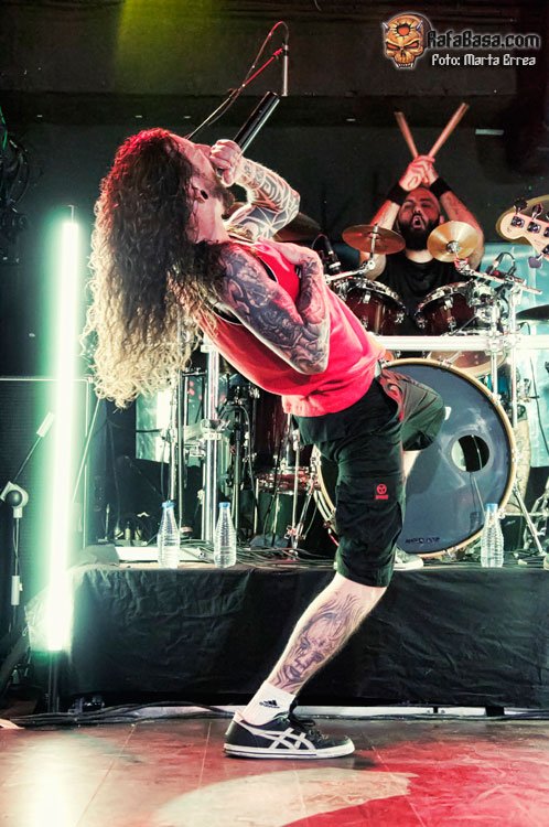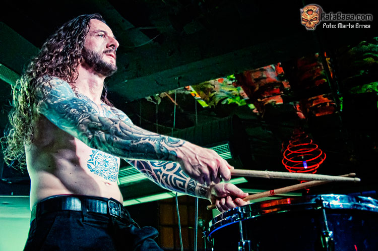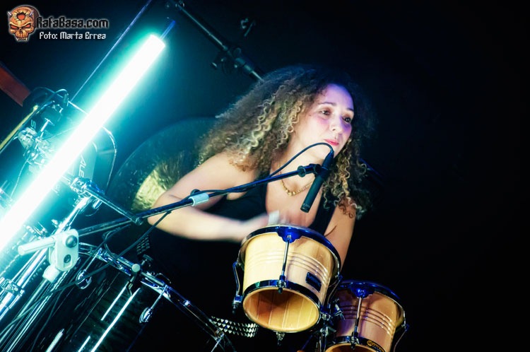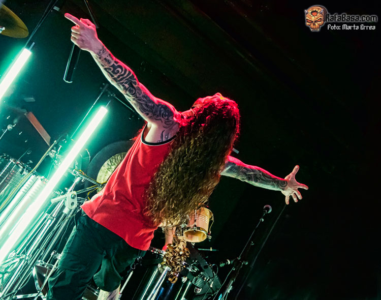 El segundo bloque sería un repaso casi al completo a su ópera prima "En Otro Lugar". Caerían "Nada por Ti", "Oculto", "Gondwana" (alucinante la respuesta de la gente y el juego de percusiones), "Cuando Despierta" (con Javier tirándose literalmente a cantar abajo con el público), "Taikos" (primer momento de cierto relax en la noche), "Nunca" (me encantó cuando Miriam toca el berimbao al comienzo), la poderosa "Sistema Nervioso", "Parásito" con sus geniales cambios de ritmo perfectamente ejecutados, no sin antes realizar "dedicatoria" con el dedo medio levantado, "El Edén" previa oración recitando guturalmente el Padre Nuestro y el cierre con "Paranoia" realizando un wall of death brutal con su público, llegado uno de los momentos de la noche en los que habia que darlo todo.