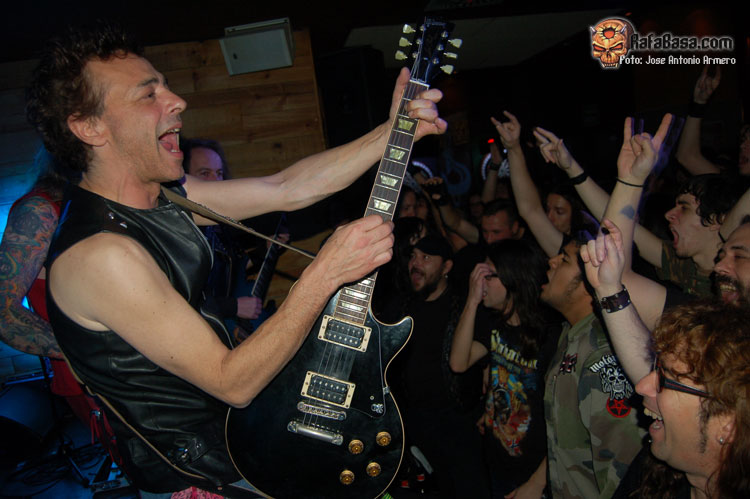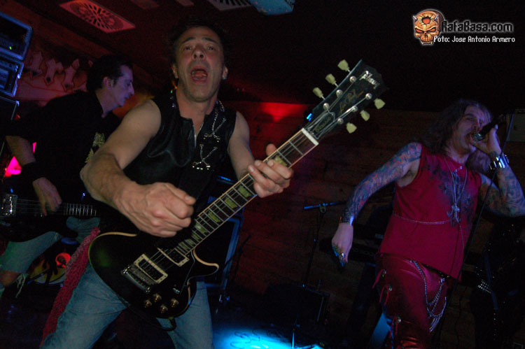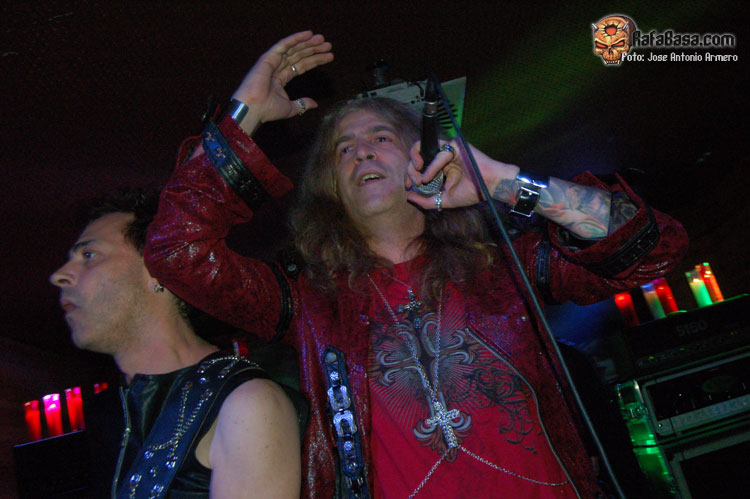 Llegaba el turno de los segovianos, y tras una épica y oscura introducción saltaban poco a poco a un escenario de ambiente particular poblando todo amplificador con numerosos velones queriendo recrear una atmósfera casi tétrica. Para cuando los primeros acordes de Sexurreción golpeaban nuestros oídos, salía a escena Oscar Sancho ante la ovación de todos, las indumentarias del segoviano siempre han sido de lo más vistoso, y esta vez no sería menos, de rojo intenso como el diablo aparecía sin dejar de sorprendernos en ningún momento. Apariencias aparte, Sexurreción tiene visos de convertirse en un futuro himno, con un texto ingenioso que recorre las dos décadas de historia discográfica de la banda y con un estribillo que se pega fácilmente, animó de un principio a la ya de por sí animada concurrencia, que había venido a pasarlo bien y sin duda lo iban a conseguir, Cuando Caza Una Pantera sería la siguiente de su nuevo disco en caer, pero la primera gran ovación vino de Jeckyl & Mss. Hyde, que sirvió para que todos fueran calentando las gargantas para una noche de acompañar vociferando a las estrellas del rock & roll que teníamos delante.