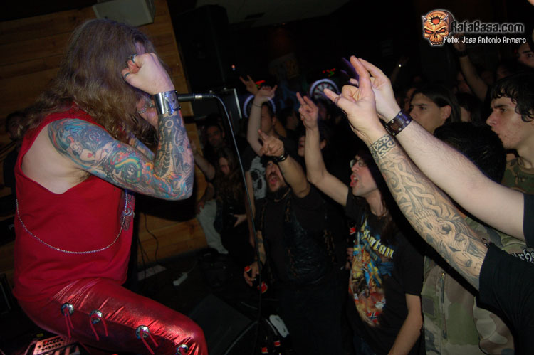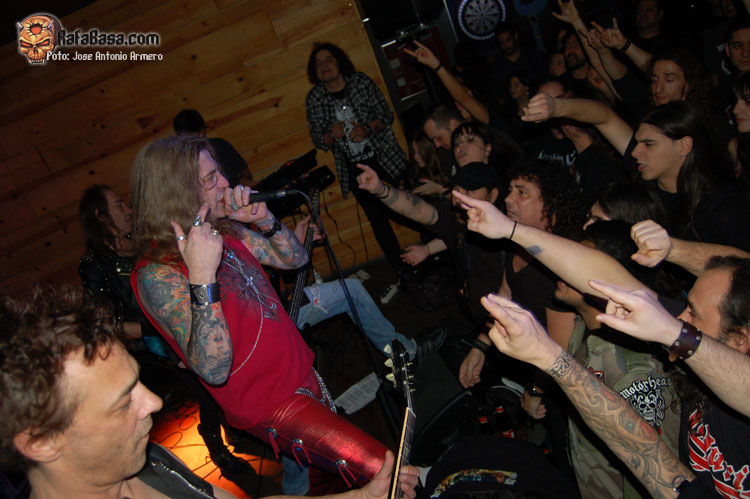 Discurso serio y pragmático adoleciendo al estado actual de la nación y su política por parte del showman Oscar, para dar paso a uno de los temas más serios del repertorio segoviano como es el de Traidores y Criminales, a ésta le seguirían La Favorita Del Rey y Dejad Que los niños Se Acerquen A Mi, dedicada a ese hombre de blanco… y que convirtió la sala en una auténtica olla a presión, logrando la colaboración absoluta de todos los allí presentes. Y si la inicial Sexurreción apunta a ser todo un himno, con Amor Y Lujuria creo que han firmado el mejor tema hasta la fecha, que a pocos días de estar en la calle, ya se sabían todos, coreando un estribillo de lo más resultón. Subía la temperatura con No Soy Carne De Cañón y el momento más duro vendría a cargo de Cae La Máscara, para que la mayoría agitara sus cabelleras a cargo de ese trepidante riff que posee el tema.