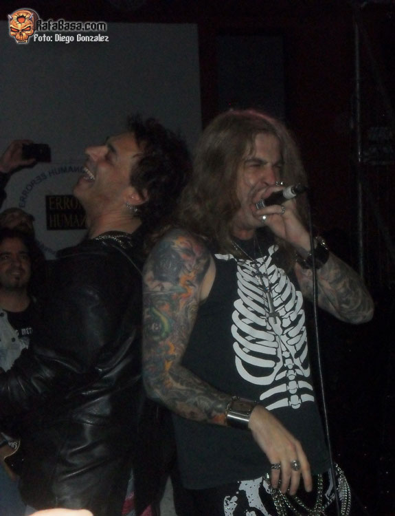 En el avance de su actuación, no tardan en sonar temas como "Carne De Cañón" o la nueva "Destino Noche Salvaje". Otra que comienza a ser un clásico en sus conciertos como es "Cae La Máscara" no falta al recital. "Estrella Del Porno" es el corte más antiguo que dejan caer que, de paso, sirve para recordarnos que LUJURIA lleva ya muchos añitos en el mundo del metal. Y sin haberse ido nunca, que eso es muy importante. Ahora el vocalista comienza a mencionar a aquellas bandas nacionales que hicieron del heavy patrio algo que muchos llegamos a adorar. Tocarían "Duro Y Potente" de BANZAI, pero cualquier otro conjunto de la época hubiera merecido el mismo homenaje. A todo esto, el concierto sigue subiendo en intensidad en su trepidante tramo final. Ahí suenan la ineludible "Corazón De Heavy Metal" o la no menos imprescindible "Joda A Quien Joda". La sorpresa llegó, al menos para mí, con "Destrucción", el clásico de los argentinos V8, que si bien ya venían tocando en vivo, no esperaba que la usaran como corte de clausura.