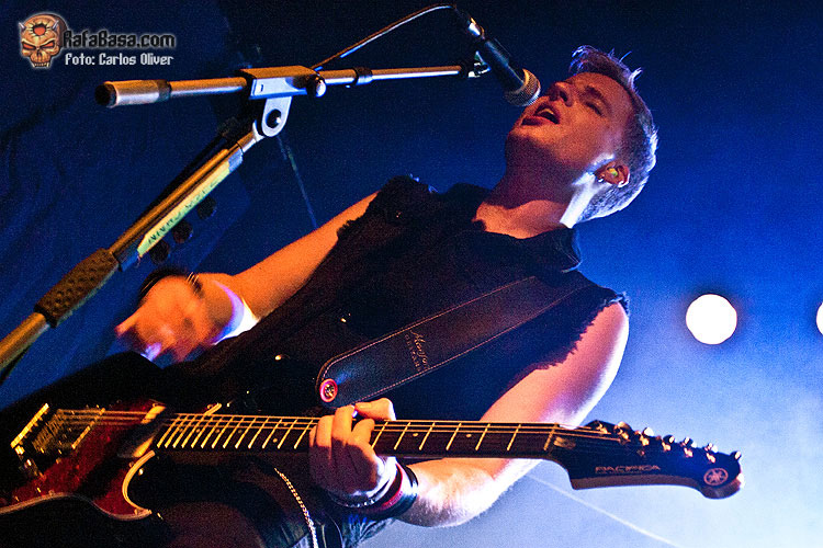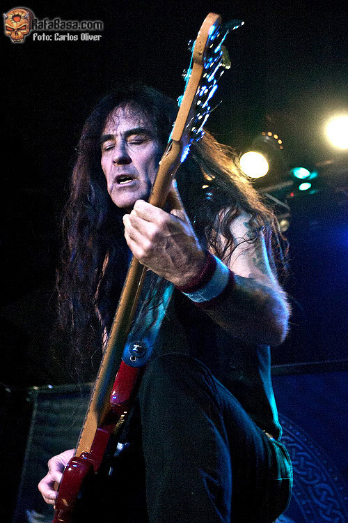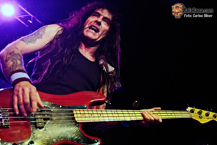 Tras un inicio un tanto irregular en el que, especialmente, Richard Taylor se mostró un poco dubitativo, el vocalista pareció encontrar, definitivamente, su tono durante la ejecución de "Karma Killer", donde su voz sonó bastante más potente y bien modulada a la hora de cuadrarla con los desarrollos progresivos de un tema de estructura compleja que se aleja del hard rock más estándar, otorgando un mayor protagonismo, a unas guitarras con una sonoridad más densa y envolvente, de echo este tema marcó el punto de inflexión de la actuación, ya que a partir de ese momento la formación británica empezó a sonar bastante más compacta y brillante que durante el errático tramo inicial. Con todos los presentes ya repuestos del impacto que suponía ver a Harris interpretando unas composiciones que, para muchos de los presentes, eran prácticamente desconocidas, poco a poco, y como si de una carrera de fondo se tratara, la formación se fue entonando respaldándose en un tema inédito, el marchoso y melódico "Father Lucifer", en el que Taylor consiguió conectar definitivamente con el público haciéndonos entonar el estribillo y levantar los brazos. Curiosamente, pese a ser este un tema totalmente desconocido para el público, fue uno de los que gozó de mejor acogida, levantando una calurosa ovación final. Durante toda la actuación llamo la atención que mientras sus compañeros permanecían bastante estáticos sobre las tablas, el bajista se movía por todo el escenario, como viene siendo habitual en él, subiéndose sobré la plataforma de la batería, y recorriendo de izquierda a derecha constantemente, un escenario que se le quedaba demasiado pequeño. Uno de los momentos más intensos y destacados de la velada, fue el propiciado por el marchoso y roquero "The Chosen Ones" uno de los mejores cortes de British Lion que en directo sonó francamente bien, conteniendo esas influencias del rock típicamente británico, y donde el respetable pudo deleitarse con esas líneas de bajo marca de la casa junto a unas armonías dobles de guitarra que nos condujeron a un final in crescendo con Harris ametrallándonos sin compasión con su bajo , provocando la algarabía entre el respetable, que coreó el nombre del bajista durante algunos minutos.