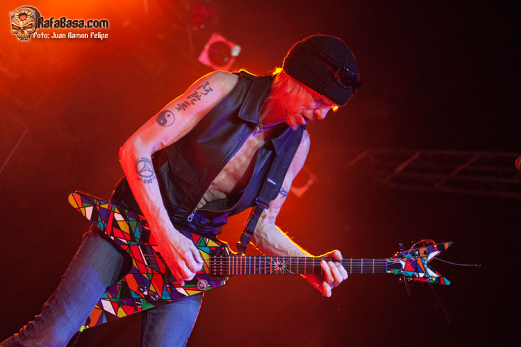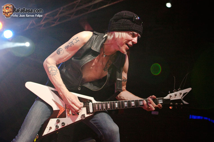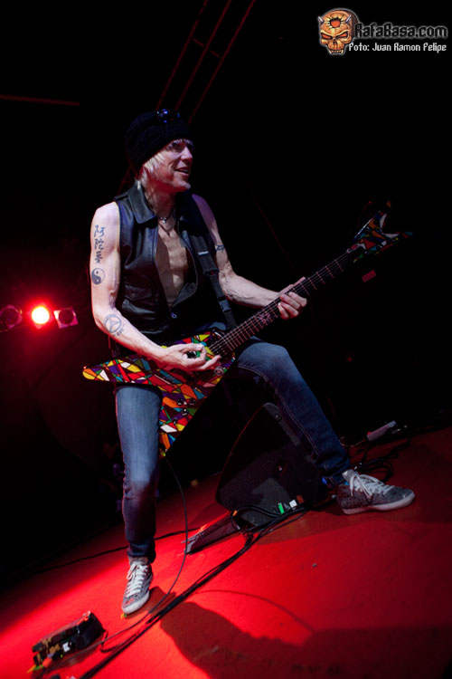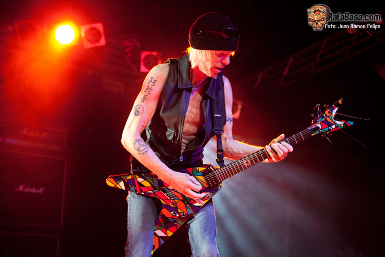 Comenzaron con el modo "no hacer prisioneros" activado desde el principio de la mano de dos clasicazos de SCORPIONS (de la última etapa de Schenker con la banda de su hermano) como son "Lovedrive" y "Another piece of meat" (que sonó como un cañón, por cierto). La emotiva "Assault attack" y "Armed and ready" nos retrotraían a los mejores tiempos clásicos de MSG, al igual que la instrumental "Into the arena" ponía de relieve, por si alguien lo dudaba, que Michael Schenker es el mejor guitarrista tocando (y componiendo) melodías. Por cierto, ¡vaya base rítmica que forman Bucholz y Rarebell!, y si encima los juntas con el gran Wayne Findlay (¡qué bueno es!), pues eso, mezcla perfecta. Las pegadizas "Rock my nights away" y "Attack of the mad axeman" volvían a remarcar la magia de los mejores MSG, y la emoción iba subiendo hasta cotas insospechadas, mientras Michael seguía tocando para nosotros, sin dejar de mirarnos, sonreír (¡qué placer verle por fin sonreír en directo!) y regalarnos las mejores melodías. Tras el nuevo tema, interesante y potente pero siempre melódico (puro Michael Schenker), que nos presenta un muy simpático, cercano y activo esta noche Doogie White, era el momento de recordar al gran Ronnie James Dio (y es que cada concierto de rock clásico tiene que ser un homenaje implícito al maestro) de la mano de "Before the devil knows you´re dead", el tema rítmico y pesado que le dedicaron en el último trabajo.