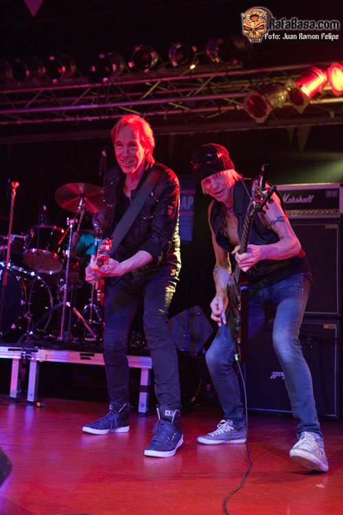 Dicho esto, fue hora y media de show, precedido por unos tal RADIO Z (pop-rock desde Alicante si no me equivoco, aunque poco aportaron al calentamiento previo de lo que íbamos a ver en un momento), y con un sonido a la altura de los musicazos que conforman la banda actual de Michael Schenker. Incluso anunciaron que ya estaban grabando nuevo disco con esta formación… De hecho, llegaron a tocar un tema nuevo llamado "Horizons", 100% escuela Schenker y hard rock clásico de la mejor calidad, como no podía ser de otra manera. Pero el concierto fue clásico tras clásico, e incluso me sorprendió que casi más centrado en SCORPIONS y en UFO que en mis queridos MSG (que un par de temas más como "On a on", "Let sleeping dogs lie", "Are you ready to rock?", "Cry for the nations" o "Victim of illusion" hubieran redondeado de lujo el set), mientras a los presentes se nos iba cayendo la lagrimilla tema tras tema. Gran ambiente en la sala, por cierto, supongo que motivado por lo que estábamos viendo y escuchando, pero me encantó ver a toda la sala coreando en muchos momentos, puño en alto, palmas y todas esas cosas imprescindibles que hacen grande un concierto de rock… y que obviamente hacen que la banda se emocione y se envalentone aún más.