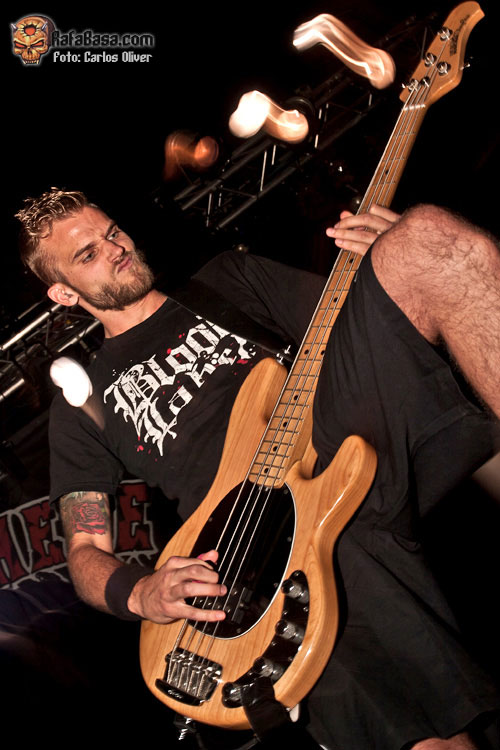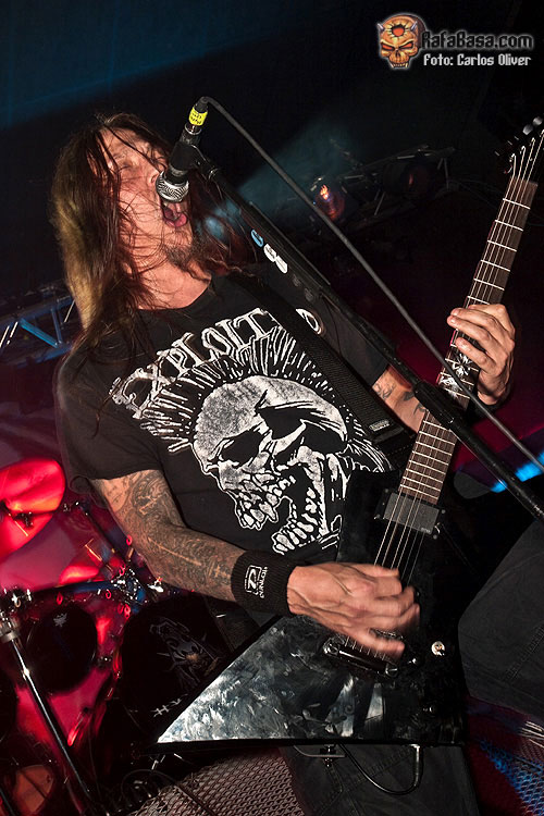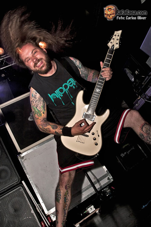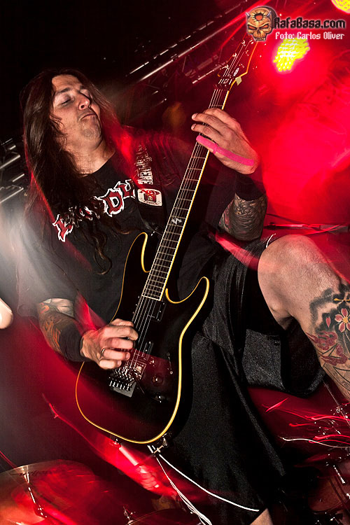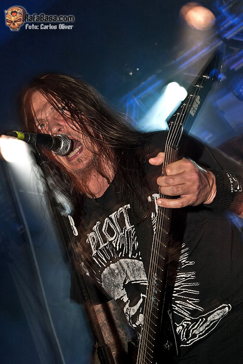 A medida que fue avanzando la descarga del combo danés no sólo fue mejorando el sonido, sino que, poco a poco, la sala se fue poblando de gente con lo que a estas alturas del show el Salamandra presentaba ya una media entrada. Tras una buena dosis de su material más clásico y arrollador llegaba el momento de degustar alguna pieza de su nueva obra "Murderlust", ofreciéndonos un todavía desconocido "Fear Me", que a tenor de la buena acogida recibida pasó holgadamente la prueba del directo. Tras las pertinentes presentaciones, y después de un par de simpáticos brindis a cargo del vocalista Esben Einegaard, la poderosa maquinaria danesa volvía a rugir con fuerza al abordarnos con la seminal "Murderous Intent", que se vería enlazada con la densidad sonora contenida en los primeros compases de la cambiante "Murder Of Life", que acabaría abocándonos sobre un final intenso y apoteósico con toda la banda mostrándose en actitud desafiante mientras ambos hachas nos descuartizaban con sus poderosos riffs rompe-muñecas.