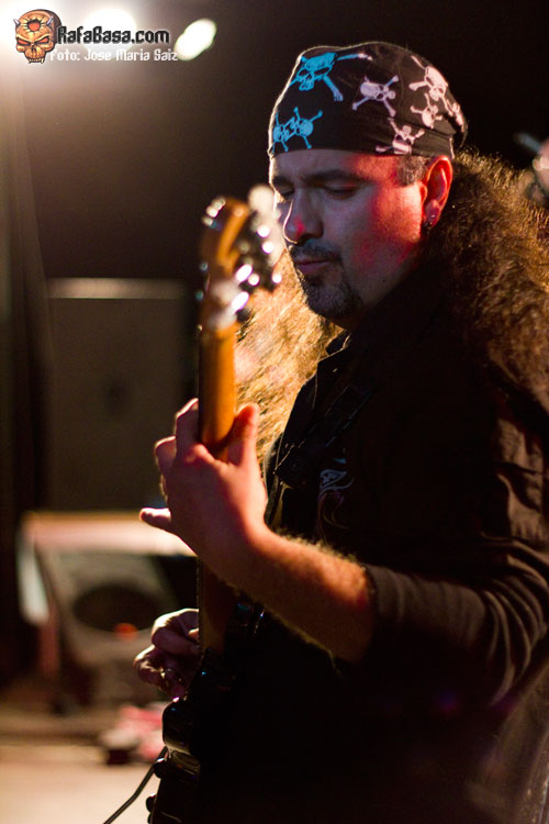 Junto a él, uno de los mejores guitarristas de este planeta: Pedro Monje, una fiera de las seis cuerdas, un guitarrista técnicamente perfecto, con un ataque impresionante y una destreza fuera de dudas. Y no puedo obviar al jovencísimo batería Gontzal , una máquina de los tambores, y al bajista Oscar, otro heavy "de los de verdad" que demuestra actitud y mucha aptitud en todo momento.