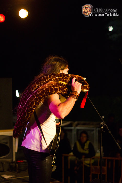 La alineación liderada por Jorge Berceo salió a "comérselo todo", y más tras la descarga apabullante de sus predecesores, que no se lo ponían a priori fácil, pero la banda riojana cogió el toro por los cuernos y se marcó un concierto estupendo, cargado de fuerza, excelentes temas y gran apoyo del público. Jorge se mostró especialmente motivado, tanto en movimientos, actitud, como cantando, incluso su voz se notó algo resentida por ello en algunos fragmentos del show, que estuvo iniciado y coronado por un "Lo Llevo en la Sangre" que sorprendió a todos. Curiosamente cerraron repitiendo el himno en cuestión, por lo que la gran fiesta arrancó con júbilo general y terminó con calor álgido total.