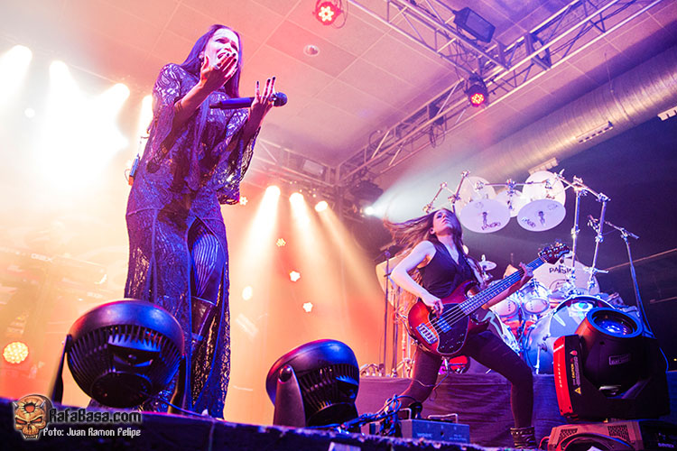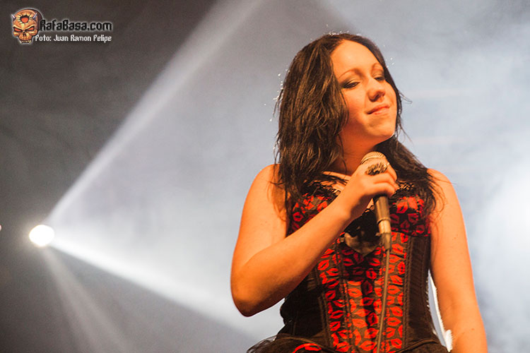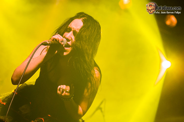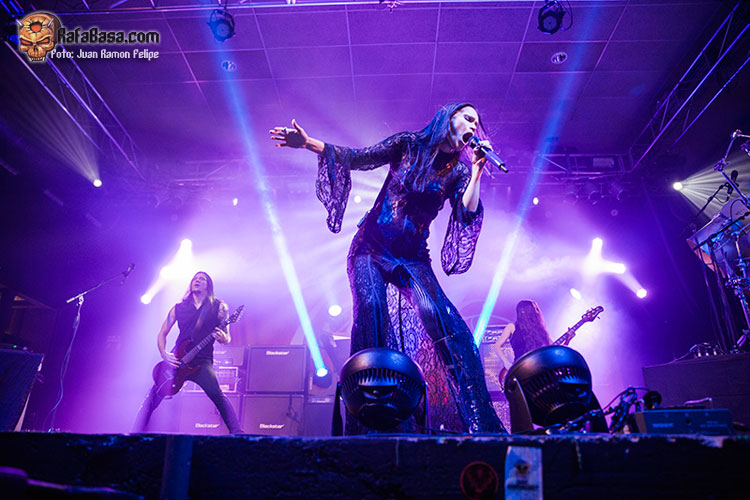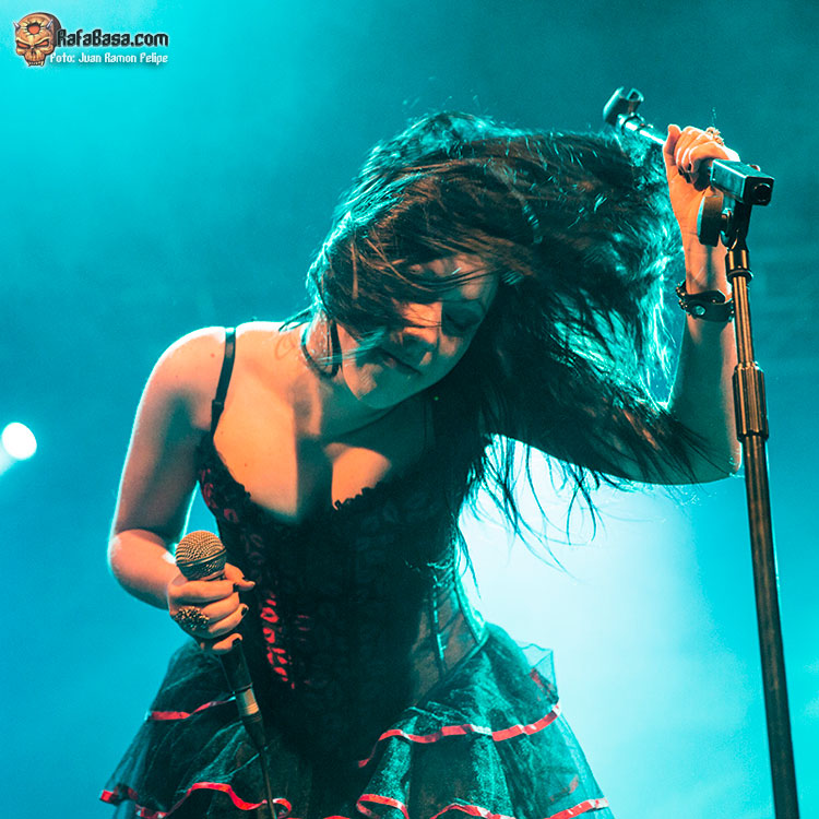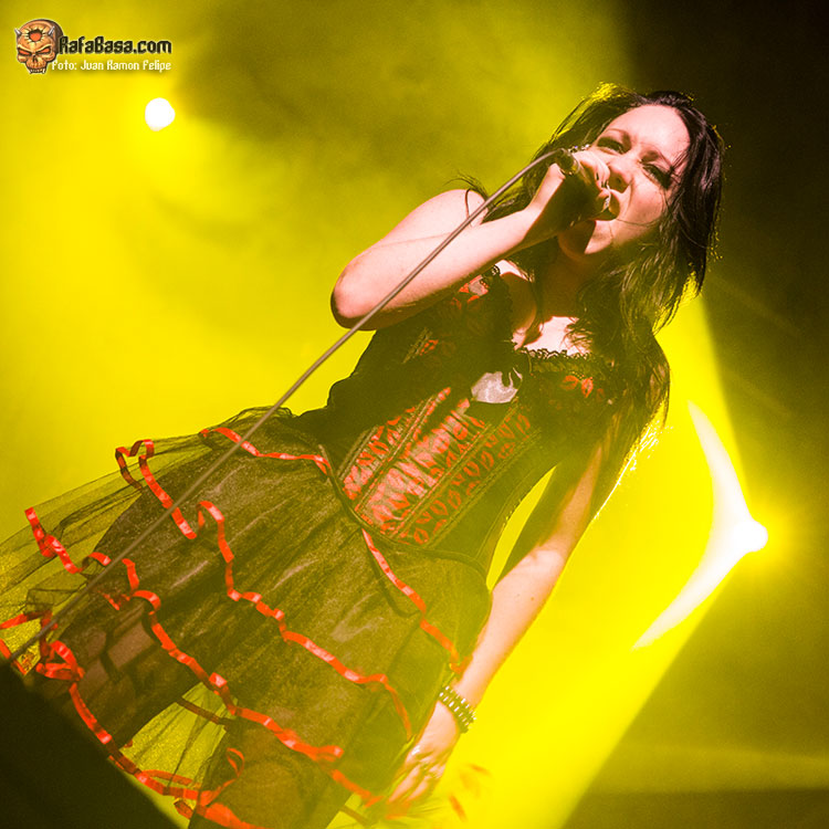 A partir de esa influencia de canto lírico en un metal sinfónico preciosista han surgido infinidad de bandas, entre las que podemos sumar a los hoy teloneros SORRONIA. Este grupo Húngaro cuenta con la presencia a la voz de Anna Király, que sin tener el registro clásico de Tarja, está claro que sí bebe de esa fuente. Musicalmente la banda suena muy bien, aunque en un estilo que a día de hoy debe de tener algún condimento especial para destacar. De momento ellos cuentan con buenas canciones recogidas en un primer disco de título «Words Of Silence», del cual nos interpretaron con mucha ilusión y algo de nerviosismo temas como el de su videoclip «Enemy Of Yourself», «Leave It Behind» y «This Is The End», apropiado tema para acabar su obra y el concierto.
