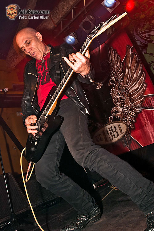 Tras una nueva ovación, el ritmo trepidante regresaba de manos de uno de los temas más emblemáticos de la carrera del cuarteto «Autopista», que fue el encargado de volver a convertir la sala en una verdadera fiesta metálica, para que posteriormente Fortu abandonara el escenario dejando el protagonismo a sus compañeros en un largo desarrollo instrumental, que acabaría dejando paso al único tema rescatado de su álbum de 1985 «Pega Con Fuerza», un coreadísimo «Te Visitará La Muerte», con Fortu ataviado en esta ocasión con camiseta de tirantes del grupo y unos vistosos pantalones de cremalleras, adoptando un look de lo más roquero que nos retrotraía a la época dorada del grupo. Aprovechando el irreverente final del corte anterior, Fortu continuo mostrando su dedo corazón para marcar el inicio de «Que Te Jodan», un corte que con el paso de los años se ha convertido en otro de sus gritos de guerra infaltable en cualquiera de sus descargas, ofreciéndonos todo un derroche de entrega, actitud y garra.