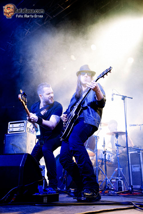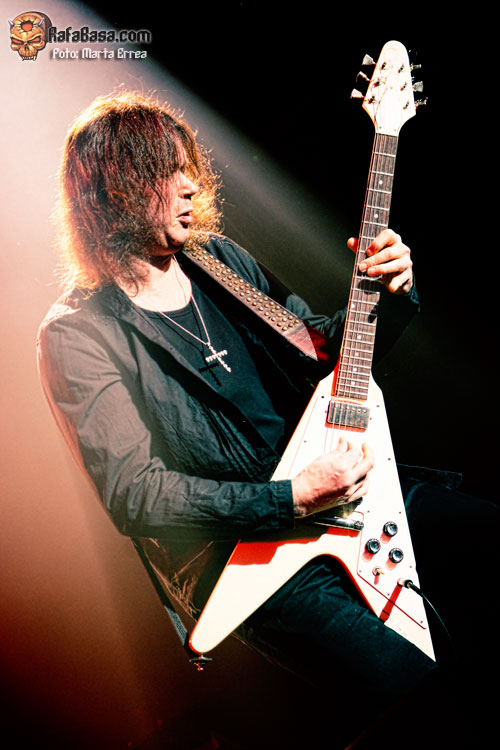 Excelente forma y buena imagen de todos ellos, lógicamente adaptada a sus tiempos actuales y muy alejada de los años de la laca y los ropajes estrafalarios de antaño, claro, pero me encanta comprobar que en este sentido el rock sigue mandando… e incluso John Norum aparece con el pelo algo más largo y nos muestra todo un catálogo de guitarras fetiches del estilo (una de flecha, una Explorer, su Les Paul más «bluesy» y su fiel Stratocaster blanca de los vídeos de los 80 para los temas más antiguos). Por cierto, sonido muy correcto (sin pegas reseñables al respecto) y un buen juego de luces, alternando colores y sensaciones lumínicas según el tema, e incluso jugando con haces de luces blancas por momentos, como en el concierto reseñado del Sweden Rock, como principal elemento destacable al respecto. Eso sí, en algún momento puntual demasiado humo y el escenario un tanto apagado, o al menos en mi opinión.