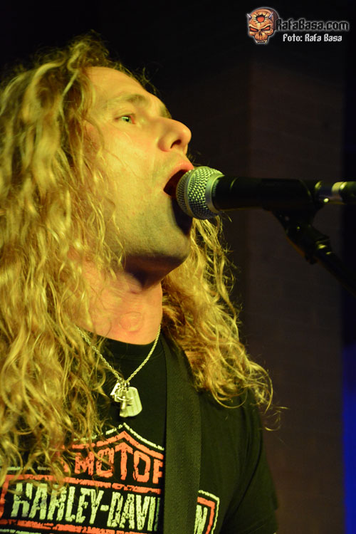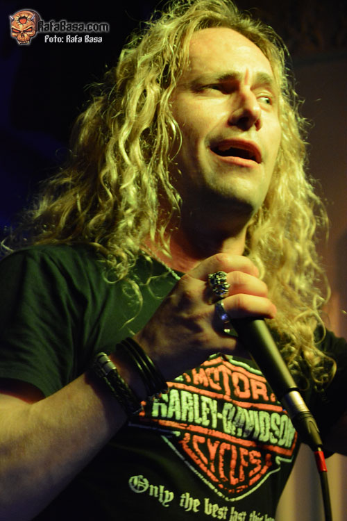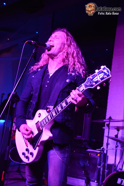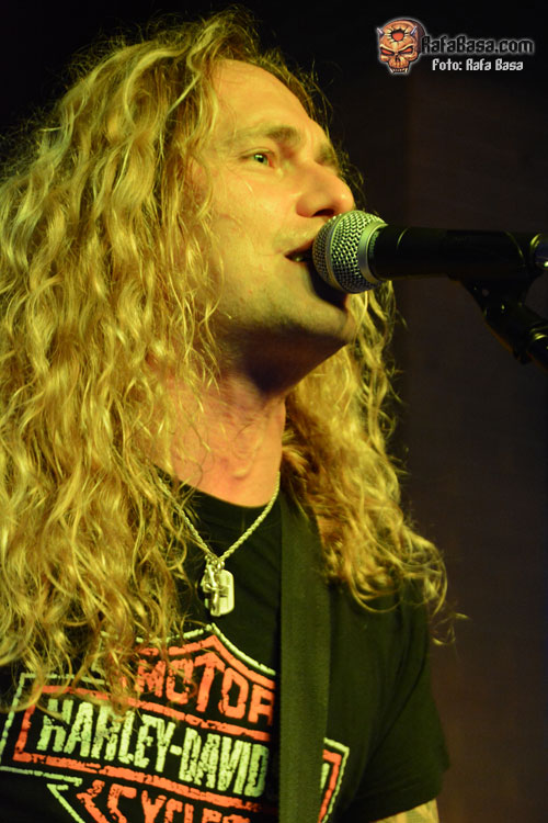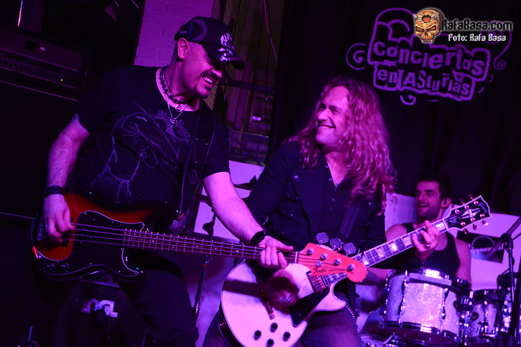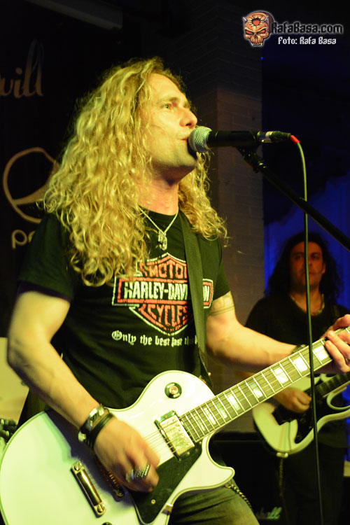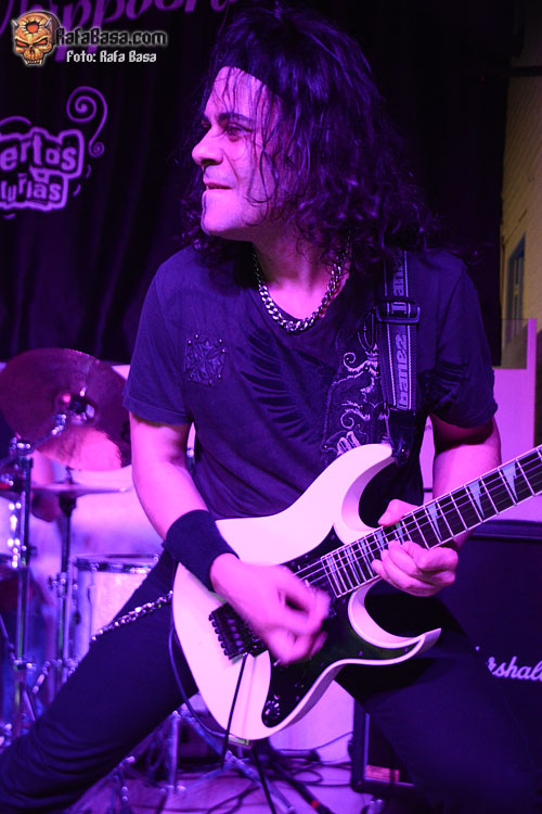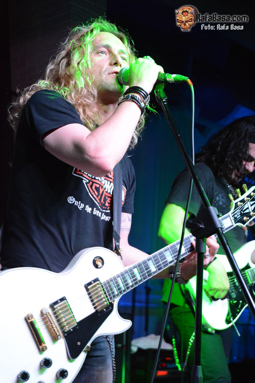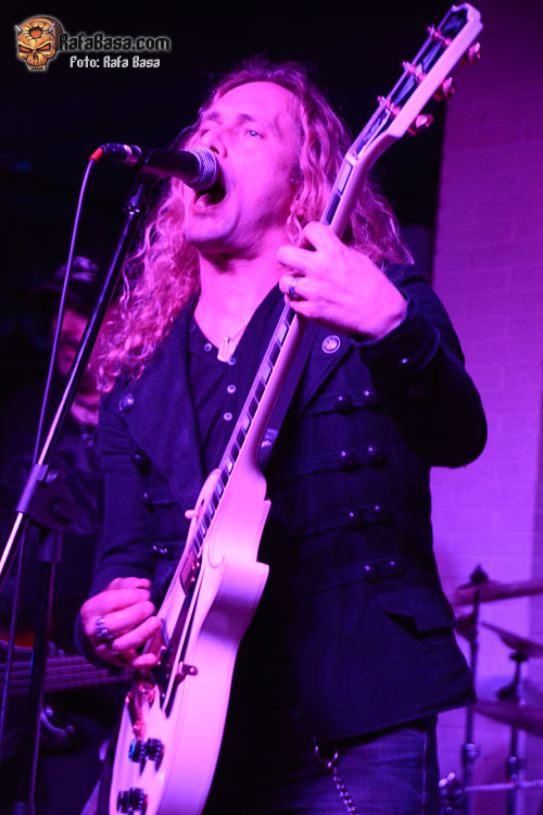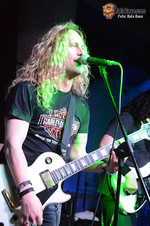 Con una asistencia media, -entre la que estuvieron Pablo y Víctor García de WARCRY-, y un equipo de sonido que dio problemas desde las pruebas previas, pero que al final dio la talla,-aunque falto de calidad y watios-, la noche arrancó con Ignacio Prieto con Gibson Les Paul blanca colgada, sonrisa total y la banda sonando como un cañonazo interpretando «Lights Out» de U.F.O., unida con «BlackOut» de SCORPIONS. Nuestro «Robert Plant nacional» es mucho, ¡¡¡qué actitud tuvo toda la noche!!! Es una pena que no hayan funcionado como deberían sus últimas aventuras, por ejemplo ATLAS de los que nada se sabe tras su marcha, porque lo de Prieto es de mucho nivel. Tiene todo para triunfar: imagen, actitud, electricidad y una voz majestuosa…Pero como todos sabemos, este mundo es injusto, e Ignacio es un claro ejemplo.
