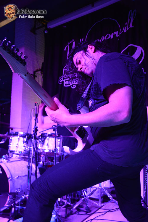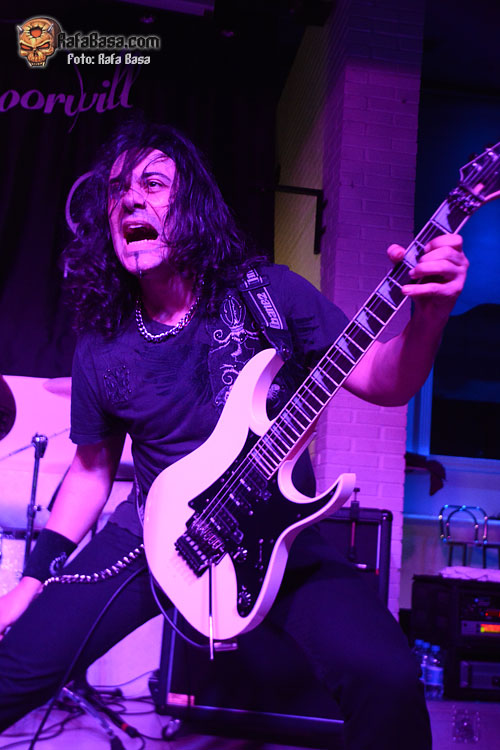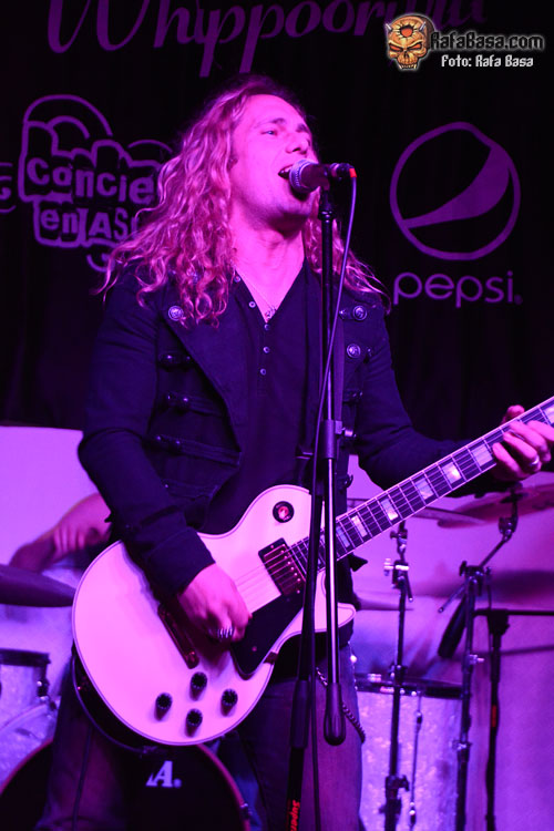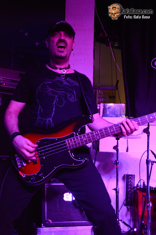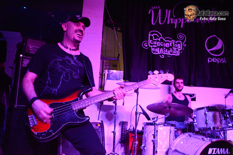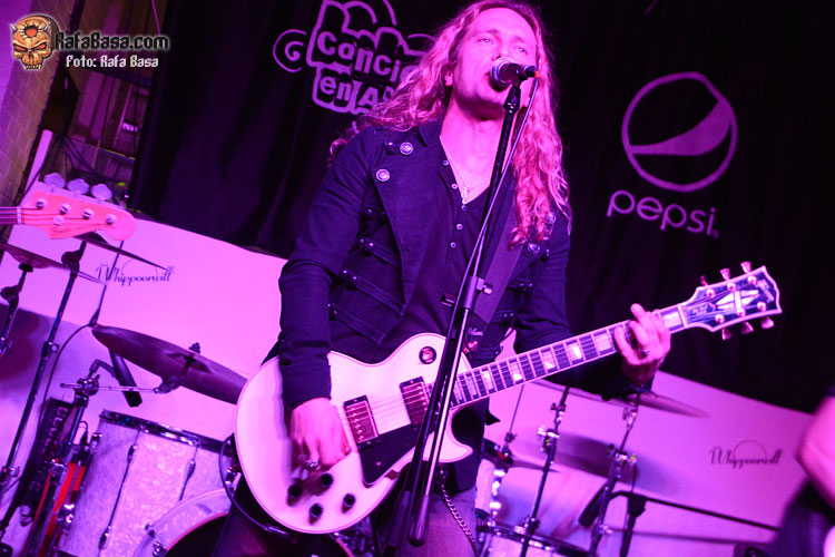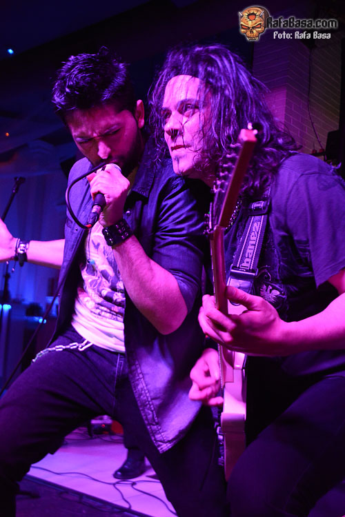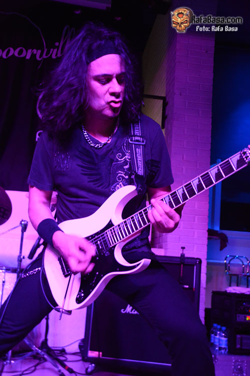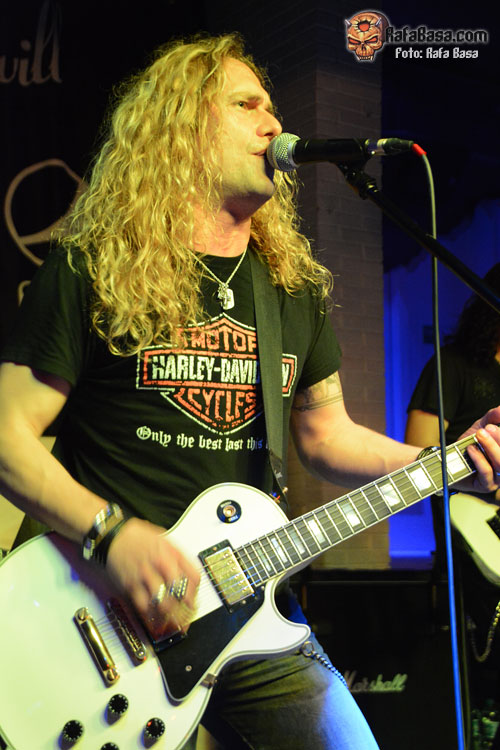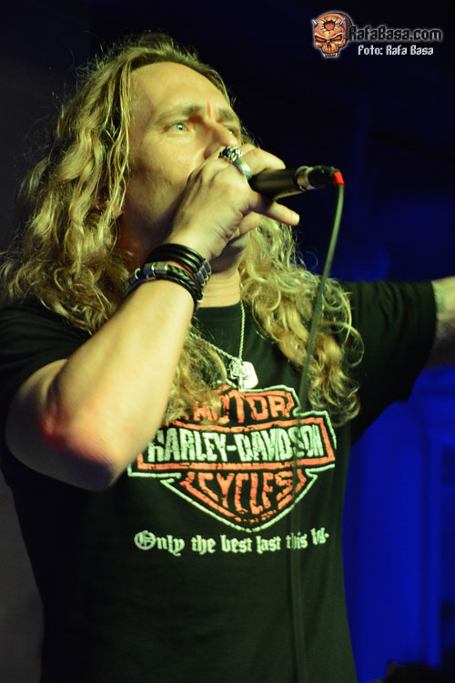 Con una asistencia media, -entre la que estuvieron Pablo y Víctor García de WARCRY-, y un equipo de sonido que dio problemas desde las pruebas previas, pero que al final dio la talla,-aunque falto de calidad y watios-, la noche arrancó con Ignacio Prieto con Gibson Les Paul blanca colgada, sonrisa total y la banda sonando como un cañonazo interpretando «Lights Out» de U.F.O., unida con «BlackOut» de SCORPIONS. Nuestro «Robert Plant nacional» es mucho, ¡¡¡qué actitud tuvo toda la noche!!! Es una pena que no hayan funcionado como deberían sus últimas aventuras, por ejemplo ATLAS de los que nada se sabe tras su marcha, porque lo de Prieto es de mucho nivel. Tiene todo para triunfar: imagen, actitud, electricidad y una voz majestuosa…Pero como todos sabemos, este mundo es injusto, e Ignacio es un claro ejemplo.