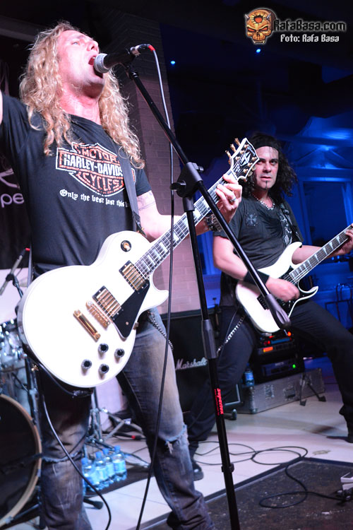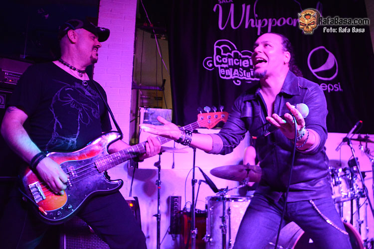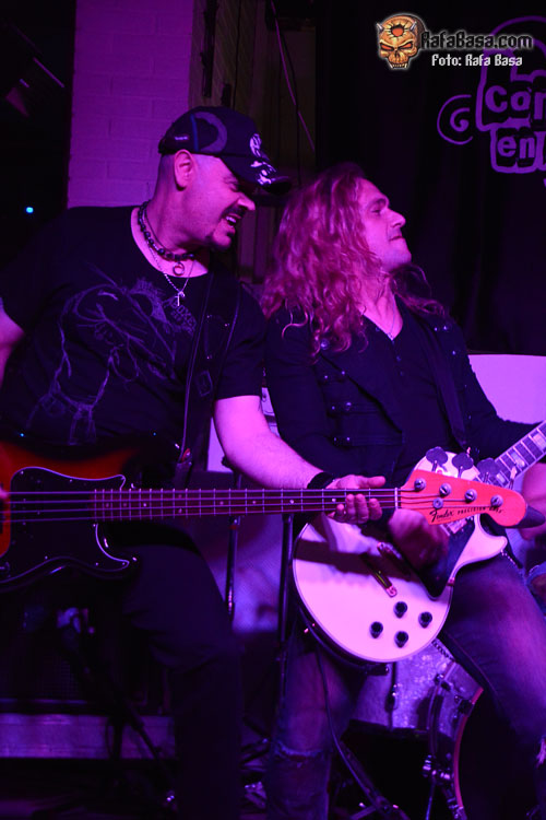Tras un pequeño respiro, Ignacio, sin guitarra, dejó claro que pocos le ganan escénicamente en este país. ¡Qué manera de vivir con movimientos y cantar con una voz perfecta el «Take a Walk» de MR. BIG! Así como un jaleado por el público «You Give Love a Bad Name» de BON JOVI. Tras él, Manuel recodó a QUEEN con «Hammer to fall», para seguir con un espeluznante «C´mon Feel The Noize», que dedicó al fallecido Kevin DuBrow de QUIET RIOT. En esta canción, Manolo cantó subiendo a unos tonos dificilísimos y muy elevados, dando la talla con creces.