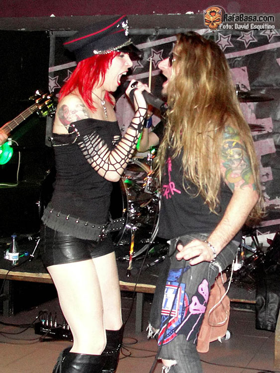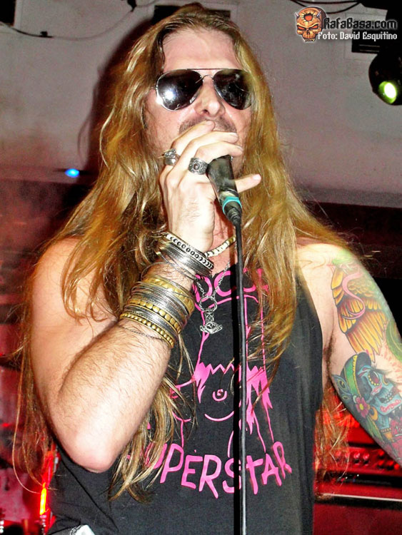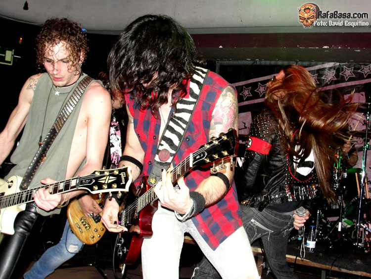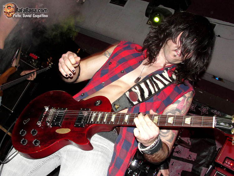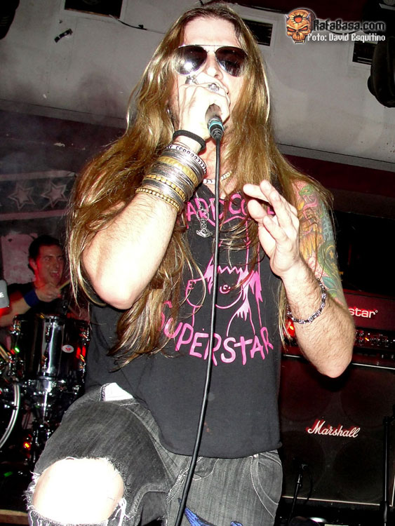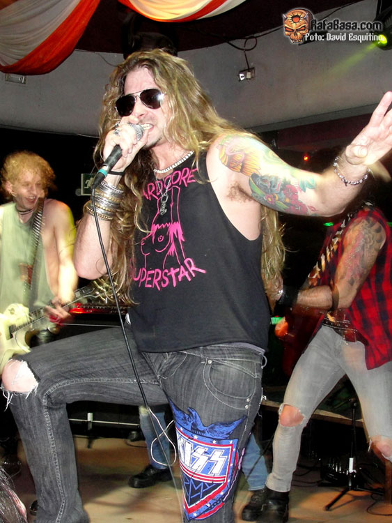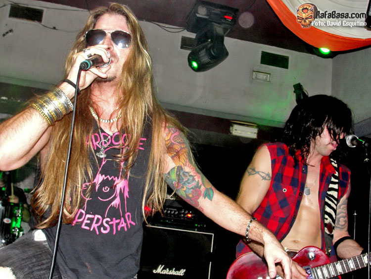 Dejaron momentáneamente a un lado su último disco para tocar «Spit it out» de su debut, tema en el que además intercalaron un fragmento de «Lick it up» de KISS, y ya que estábamos fuera de de su última obra aprovecharon el momento para versionar justo después a una de sus bandas de referencia, SKID ROW, con una gran interpretación de «Monkey Bussiness» que todos disfrutamos, ellos los primeros… Unos tragos extra de Jack Daniels y volvieron a «Sex Booze and Tattoos» con «Givin’ it up», que significó la calma de un tema algo más pausado y rítmico antes de desatar toda la furia de «Fuck it all», single del disco y que sonó como un cañón, muy bien recibido por el respetable. Por cierto, muy recomendable el visionado del videoclip de ésta última, sencillo, pero efectivo y además una buena carta de presentación del grupo para aquellos que todavía no lo conozcan, mostrando quizá su faceta más cañera.
