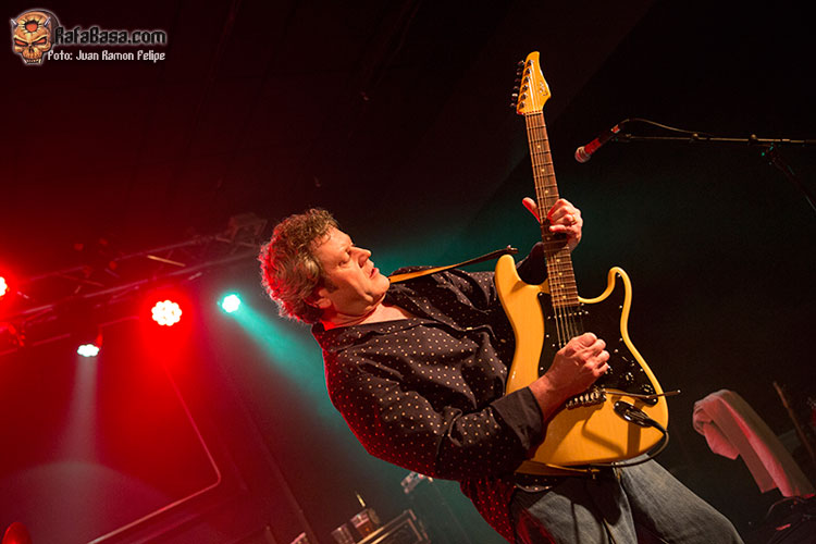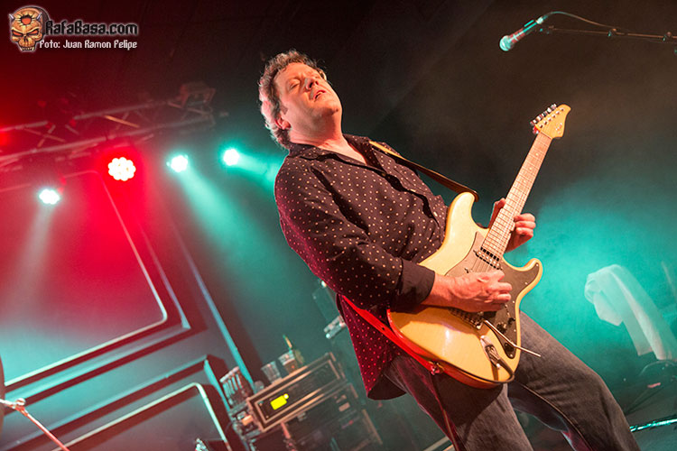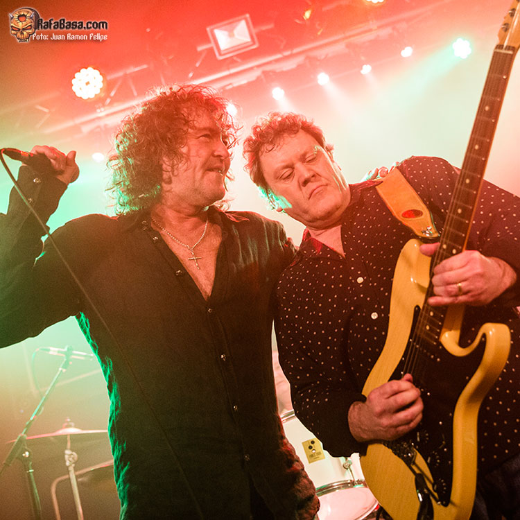 Afortunadamente en esta ocasión refrendaron lo que ya pudimos atisbar en cierta manera hace unos meses en Nottingham, ahora disfrutando de un show completo, sin una sola aparición de guitarras acústicas, y con la presencia por fin de un segundo guitarrista-bajista competente como Nigel Clutterbuck que WHARTON ha rescatado para la causa después de un montón de años, para suplir a Richard Dews, con el que el cantante llevaba compartiendo banda casi a modo de pareja de hecho desde principios del siglo XXI. La verdad, no eché para nada de menos a Dews, todo lo contrario, por fin pude disfrutar de Dare en plenitud, con un sólido compacto, potente y dinámico, con un Vinny Burns que a pesar de su escaso movimiento en escena sigue siendo un guitarrista elegante y competente encargándose de todos los solos, algunos realmente brillantes, dejando la rítmica en la primera parte del set para Nigel que no paró de sonreír e implicarse como el que más, mientras Kevin Whitehead aporreaba con fuerza y clase sus tambores.