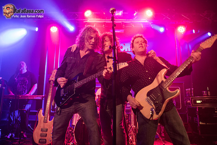 Momento relajado y un poco caótico con una versión editada de «Carrie» de EUROPE con la que hicieron tiempo para que subiera al escenario Mar Cabello que se marcó un bonito dueto con Oscar en la balada «Hold The Dream» que supuso uno de los puntos álgidos del concierto creando un buen contraste de voces. Volvió el ritmo más festivo a lo DANGER DANGER con «Forbidden Love» que me sonó bastante más cañera y efectiva que en estudio haciéndonos mover el culo, al igual que una mejorable versión del himno «Separate Ways» de JOURNEY con Carlos colgándose el teclado al hombro, y que ya hicieron cuando tocaron con Eclipse, como entonces no les acabó de quedar todo lo bien que sería deseable, a pesar de lo cual fue ampliamente coreada por los presentes.
