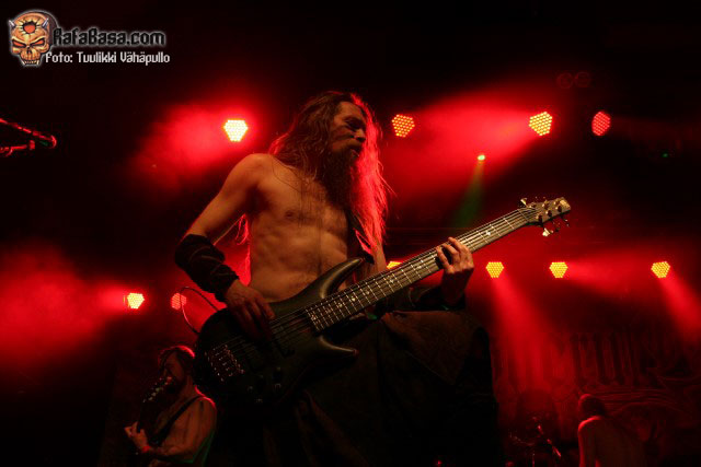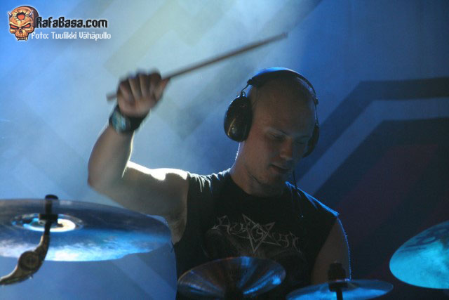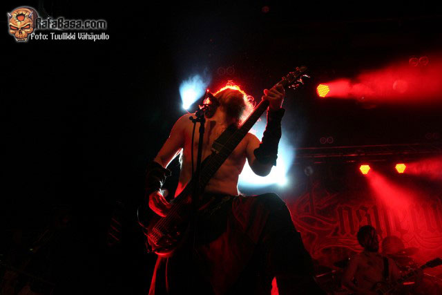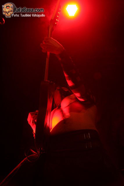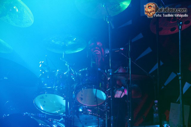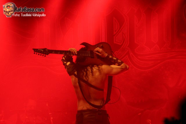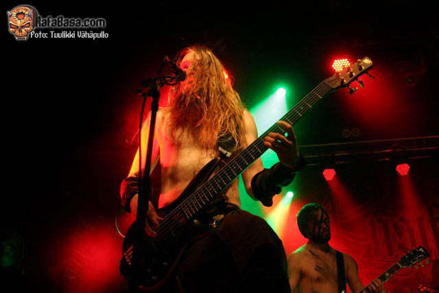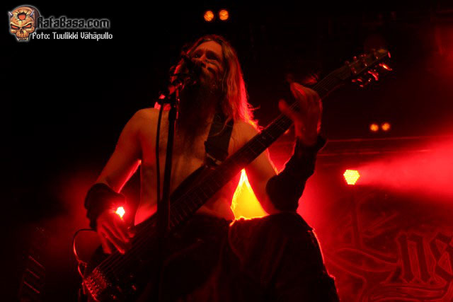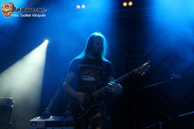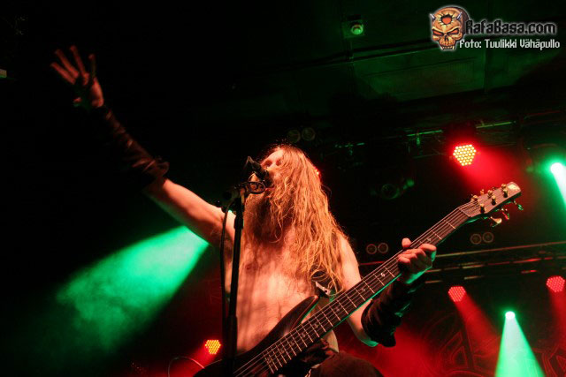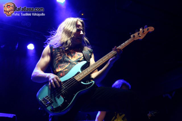 «Treacherous gods» parecía rebajar un poco la fuerza de su descarga para quien no conociera el tema, para nada, nueva locura en la sala con un Petri más animado de lo habitual y Sami desatado al bajo como viene siendo lo normal, y es que como dijo otro emigrado en Finlandia, mi amigo Toni de los desparecidos thrashers valencianos HELLTRAIN, cualquiera diría que es finlandés moviéndose así.