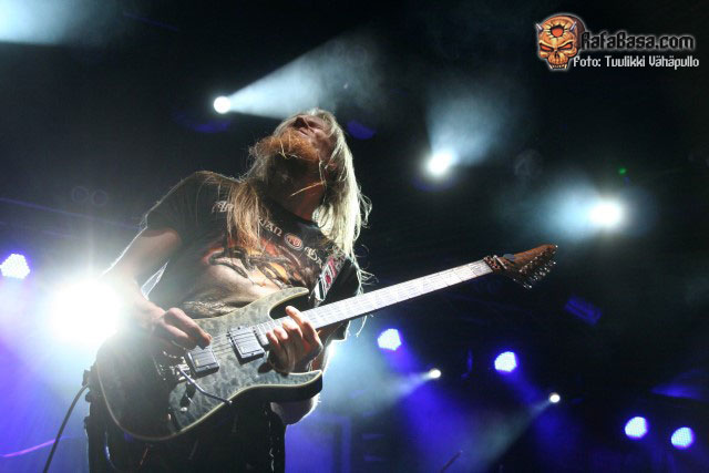 Este concierto estaba empezando a tener la talla de legendario (y eso con la de años que llevo en el mundillo no es decir poco), y es que escuchar cosas como «One more magic potion» entrelazada con «For whom the bell tolls» no pasa todos los días, sencillamente y en dos palabras, a-cojonante la respuesta del público ante lo que venía desde el escenario (he tardado un año pero al final compruebo que a veces los fineses tienen algo de sangre en las venas), rematando lo empezado de forma colosal con dos clásicos más, «Battle song» y el único tema en fines de la banda, «Lai Lai Hei», cantada por Markus en solitario y que la salta entera cantó a pleno pulmón, con mucho el punto álgido de la noche.