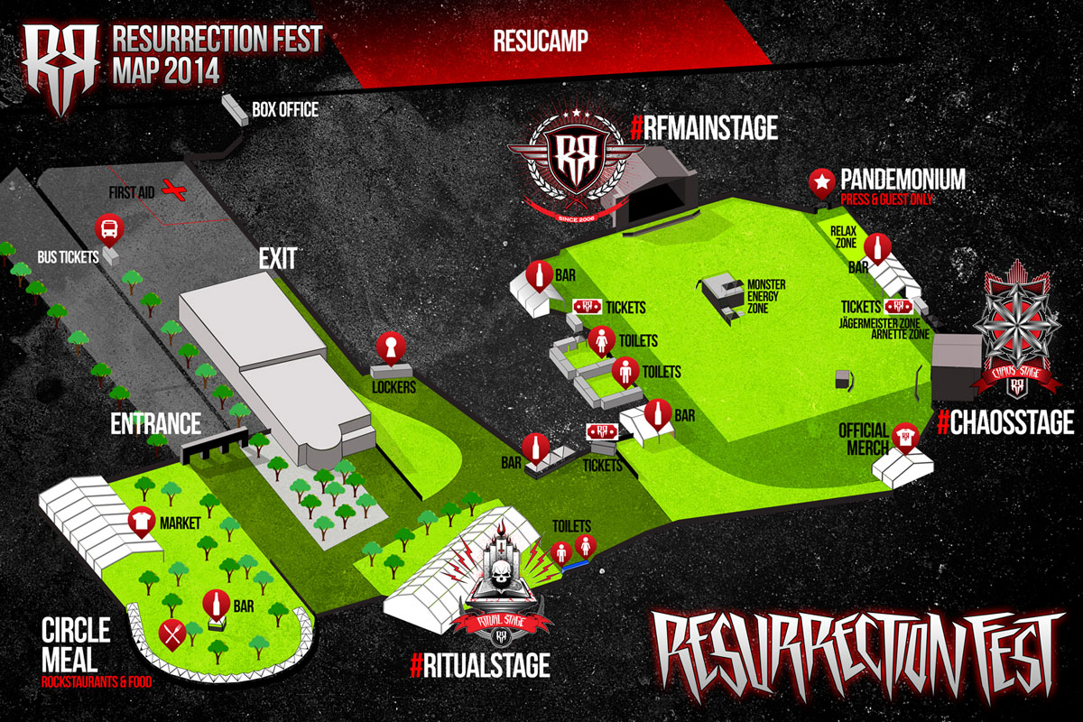 Se acerca la nueva edición del RESURRECTION FEST, y tras la tan buena acogida que el año pasado tuvo el RESUCAMP, «sold out» en un mes, este año hemos decidido no sólo volver a repetirlo, sino que gracias a la ayuda del patrocinador de este año, EMP, mejorarlo. Habrá novedades: la principal de ellas es que estará situado en el propio recinto, por tanto mucho más cerca que el año pasado y también muy próximo a la playa de Celeiro. Se tratará de un nuevo emplazamiento que seguirá contando con facilidades como: