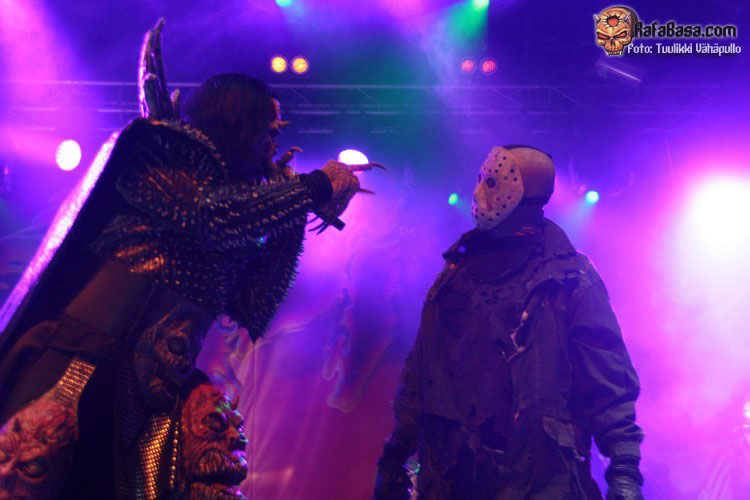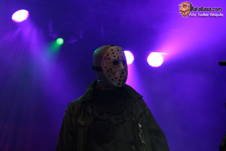 Me pillaron muy por sorpresa cuando Mr Lordi anunció que iban a tocar algo que hacía mucho tiempo que no tocaban, algo muy especial pero que la fecha lo merecía, y se trataba nada más y nada menos que la versión del «He’s back (The man behind the mask)» que Alice Cooper escribió para la sexta (creo recordar) parte de la saga «Viernes 13» allá por 1986, y la verdad es que me encantó como la llevaron a su terreno, menos glam y algo más agresiva que la original, aunque para agresividad la de Jason Voorhees acabando con la vida de una fémina sobre el escenario a machetazo limpio. Puro espectáculo, lo dicho.