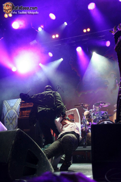 Si he de quejarme solo de una cosa (aparte de que no tocaran «Happy little boozer» entre otras más), y es que centraron demasiado sus pocos minutos en su último trabajo hasta la fecha, «Manala», mucho más oscuro y metálico de lo habitual (no en vano Manala es el reino de los muertos, también llamado Tuonela o Pohjola), muy buen trabajo pero no el más indicado para el directo a mi parecer, y menos contando con tan poco tiempo en el escenario. «Rauta» o «Uni» sonaron muy bien, pero dejaron a los presentes aún más fríos, me gustaron sí, pero con apenas 45 minutos deberían haberse planteado otro setlist, en mi humilde opinión.