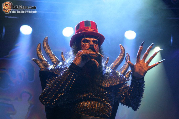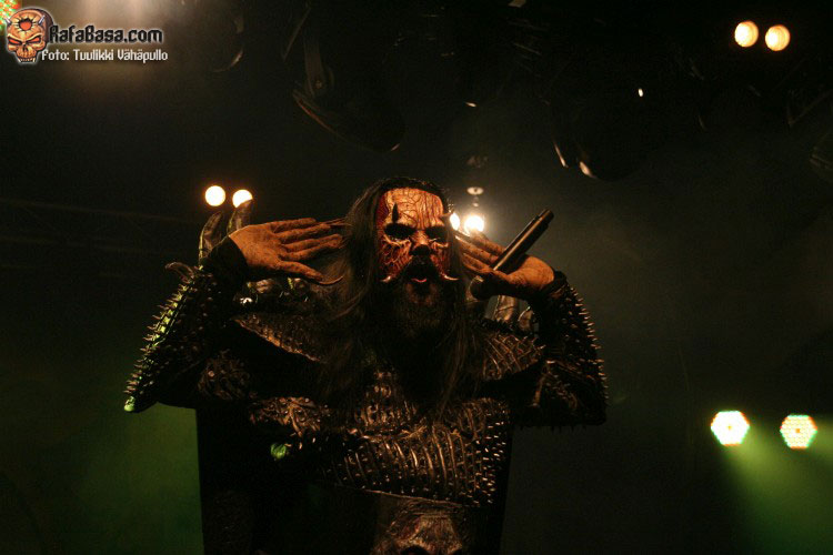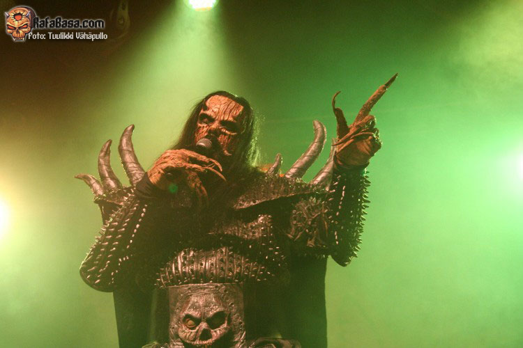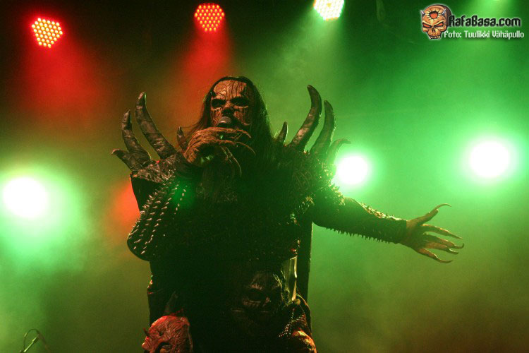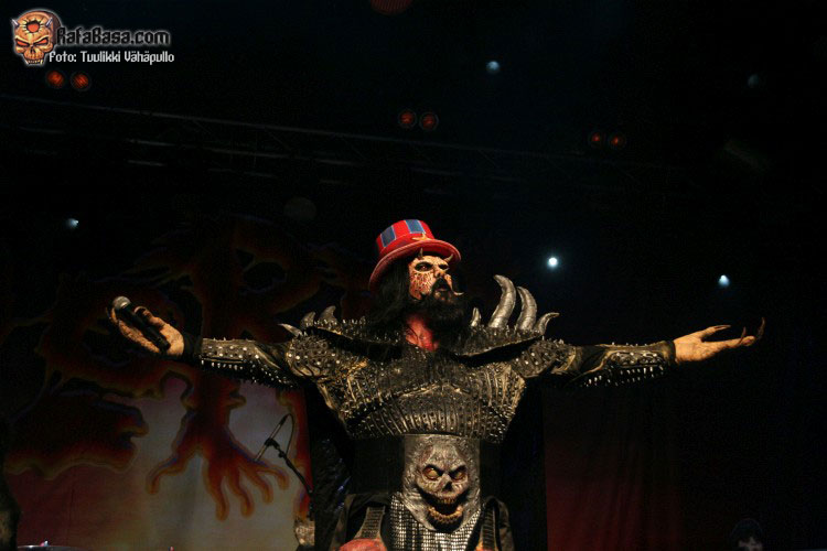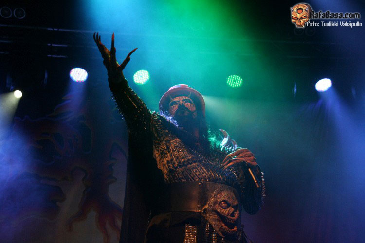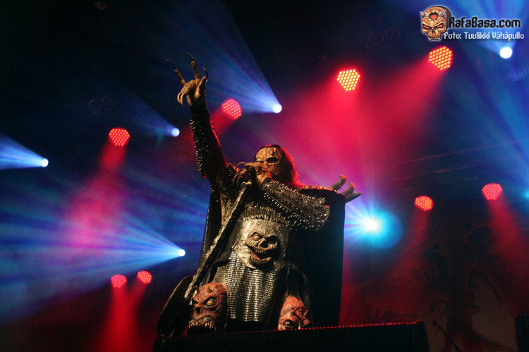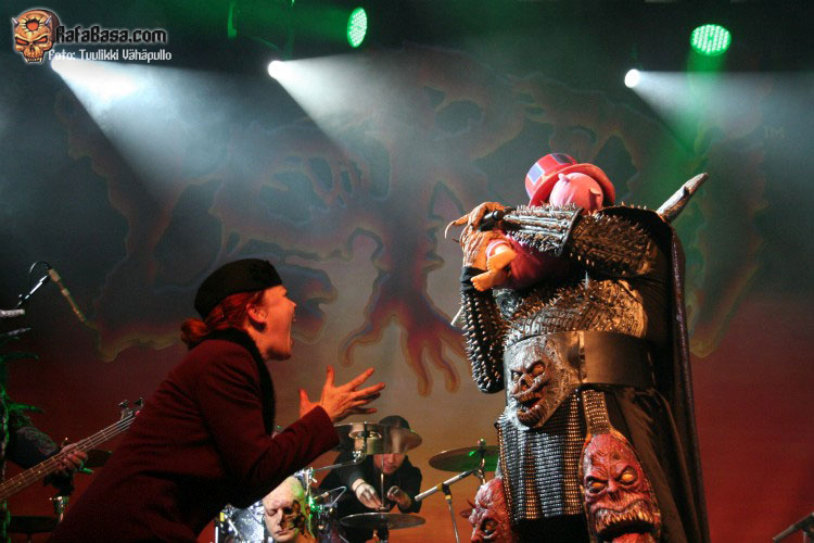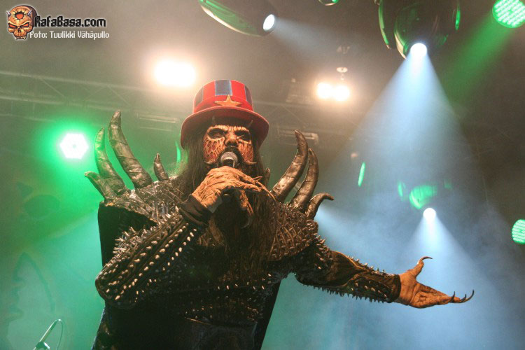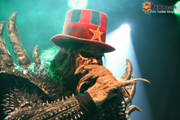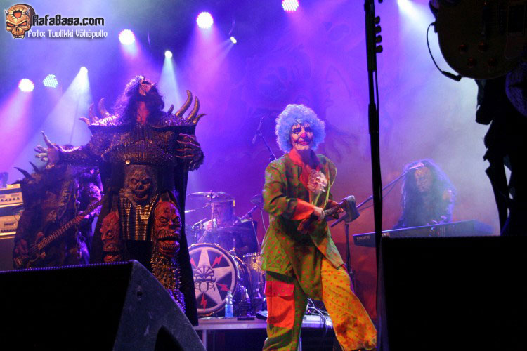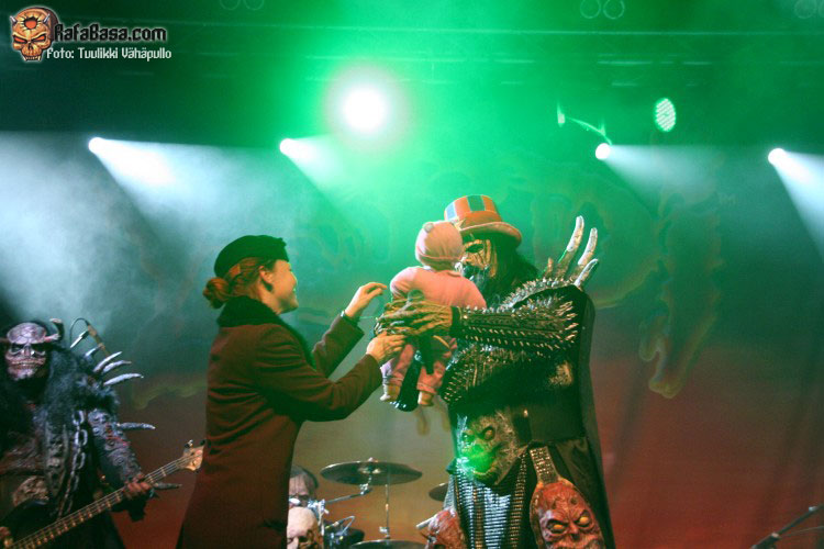 Tiempo para un nuevo repaso a su ya lejano «The arockalypse», en esta ocasión y como no podía ser de otro modo (a mi parecer), le llegó el turno a una más pausada y oscura «It snows in hell» que sonó a la perfección, dando paso otro nuevo corte de «Scare force one» , «Sir, Mr. president, Sir», un tema de riffs macarras y machacones donde mr Lordi ataviado con sombrero sospechosamente americano ejercía de maestro de ceremonias a la vez que devoraba bebes de incautas madres que se paseaban por el escenario.
