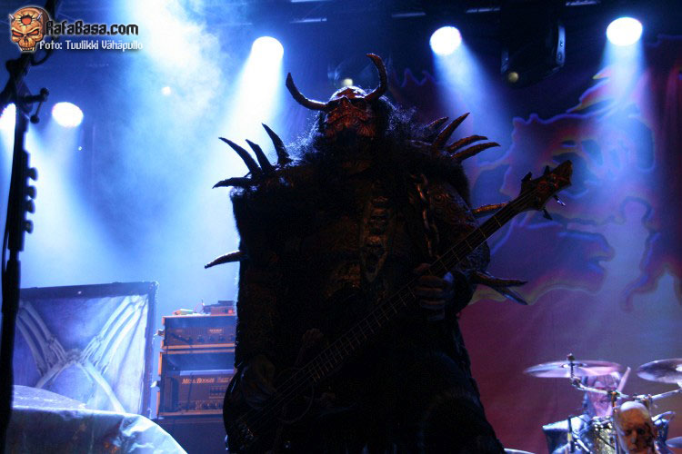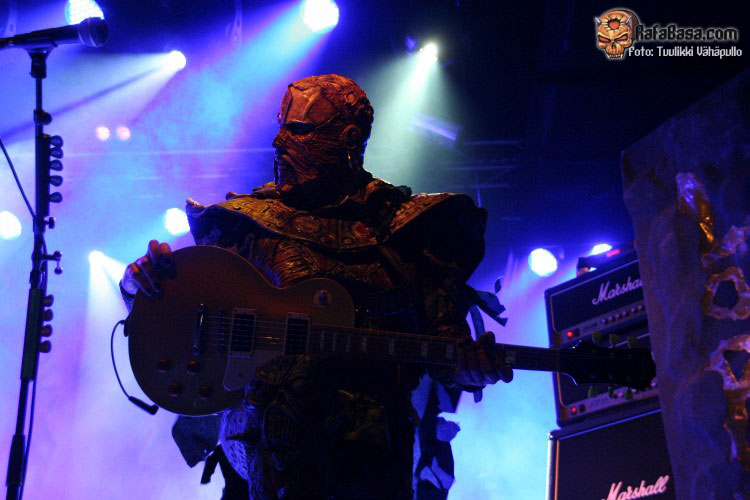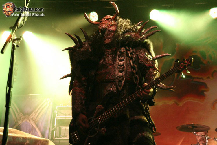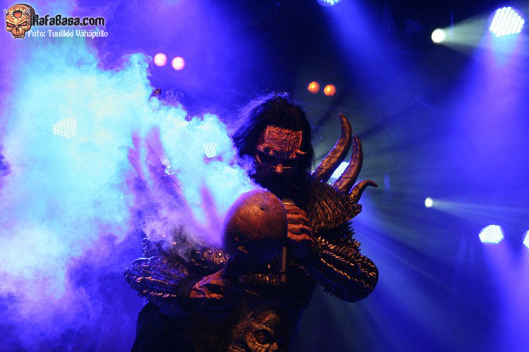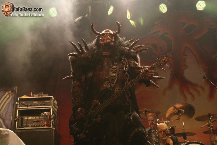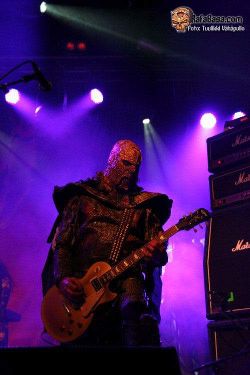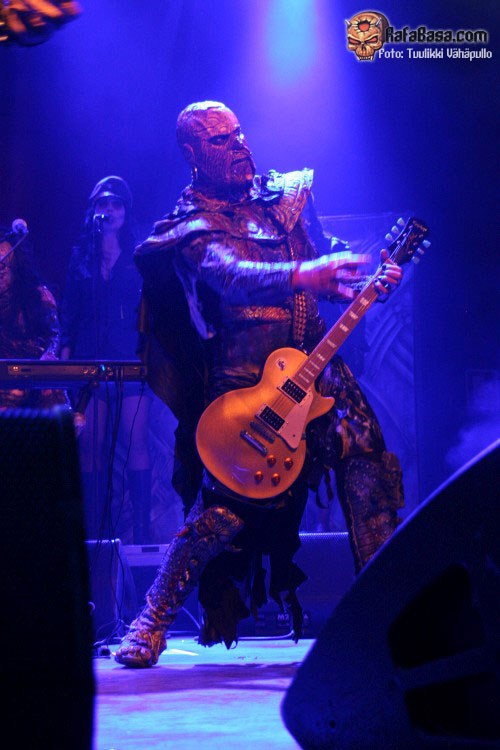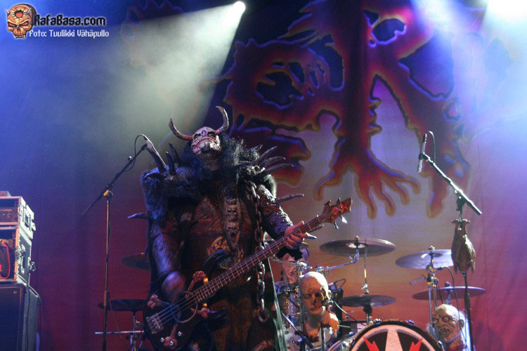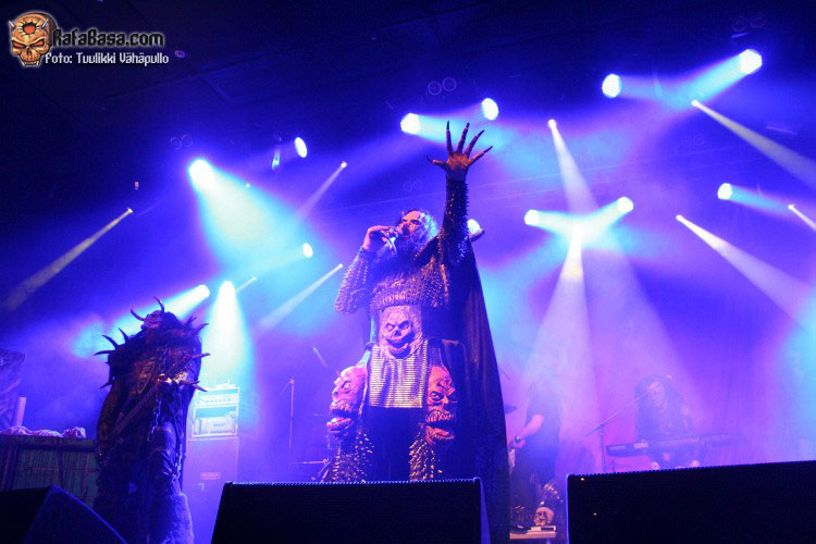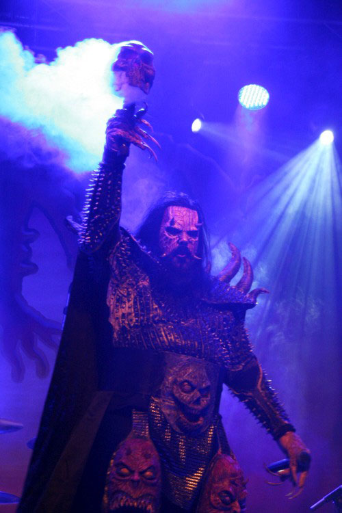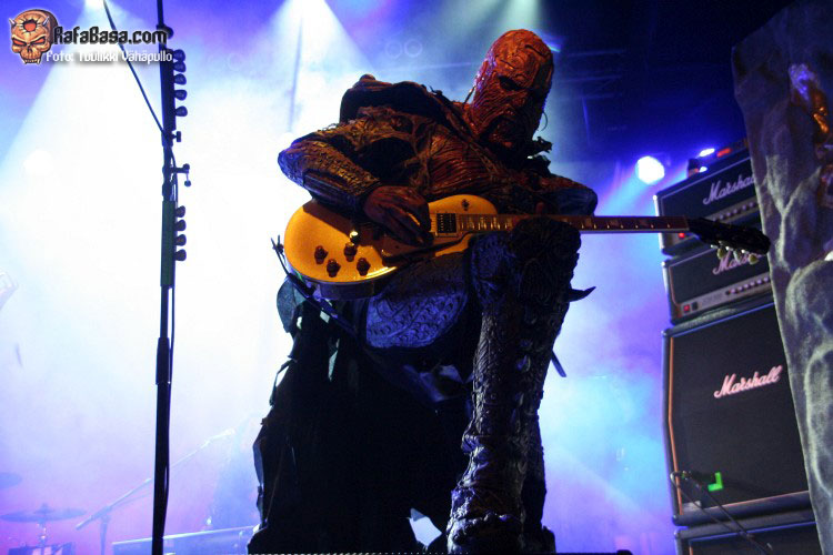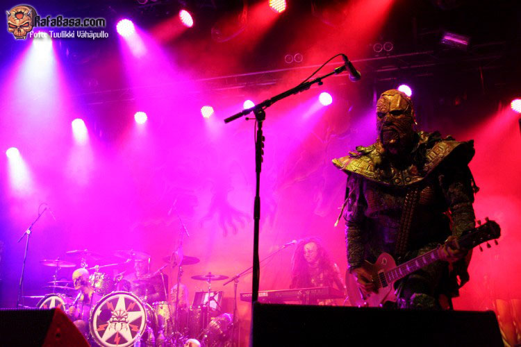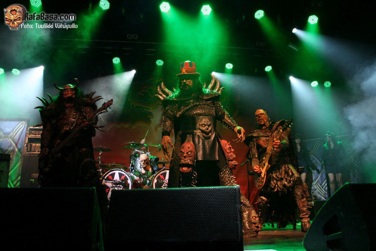 Tiempo para un nuevo repaso a su ya lejano «The arockalypse», en esta ocasión y como no podía ser de otro modo (a mi parecer), le llegó el turno a una más pausada y oscura «It snows in hell» que sonó a la perfección, dando paso otro nuevo corte de «Scare force one» , «Sir, Mr. president, Sir», un tema de riffs macarras y machacones donde mr Lordi ataviado con sombrero sospechosamente americano ejercía de maestro de ceremonias a la vez que devoraba bebes de incautas madres que se paseaban por el escenario.