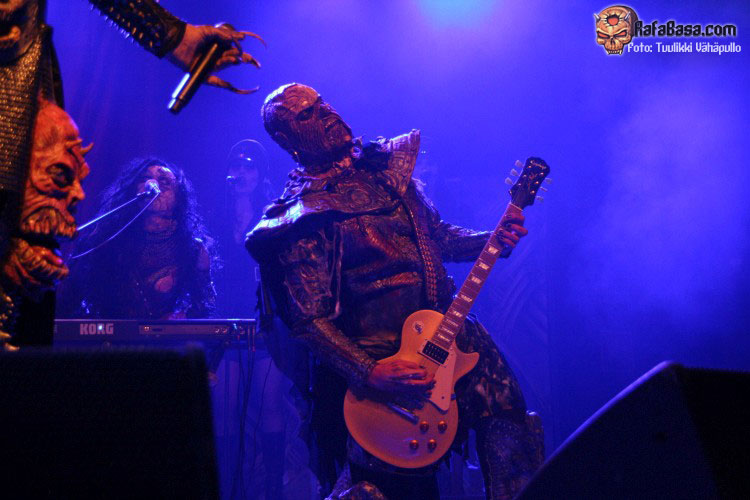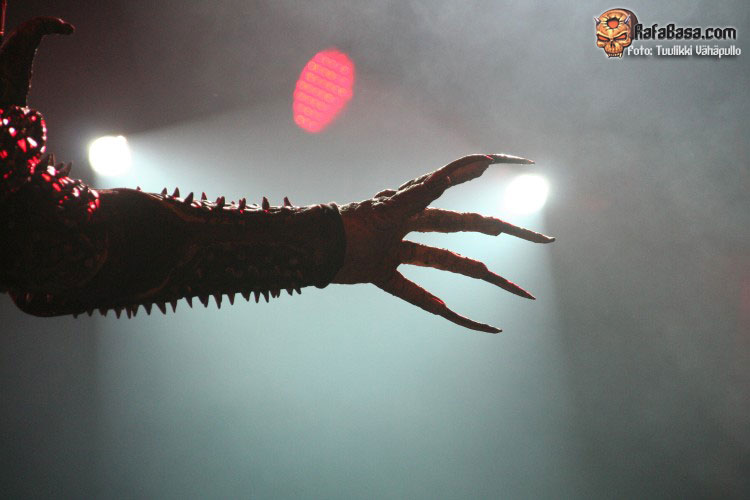 A lo que interesa… entre vítores y aplausos y tras la intro obligatoria arrancaron a ritmo uno de sus nuevos temas, es jugársela mucho teniendo en cuenta que el disco había salido a la venta el día anterior y muy pocos lo tendrían ya, pero lo cierto es que «Nailed by the hammer of Frankenstein» gustó a propios y extraños, muy buen tema pese al desconocimiento del mismo de los presentes, pero nada que ver con la algarabía con la que se recibió en toda la sala la archiconocida «Hard rock halleluyah», y fue entonces cuando en gran parte recordé lo divertidos que pueden llegar a ser estos tíos en directo y lo pegadizo de sus temas, amén de ser puro espectáculo, y es que no nos engañemos, al igual que pasa con RAMMSTEIN, quien diga que no está ahí también en parte por su «performance», miente como un bellaco.