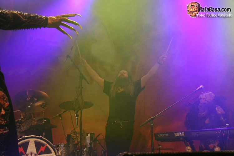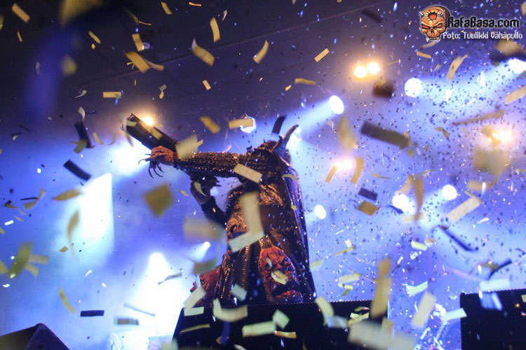 «Devil is a Loser» es sin duda uno de los mejores temas que jamás han compuesto los de Rovaniemi, y quedó más que patente a lo largo del mismo por la respuesta del público, dejando a los más pequeños con la boca abierta aún más al ver a Mr Lordi desplegar las alas sobre el escenario (si, había padres con sus niños). Tras esto la banda dejaría el escenario, volviendo poco después ya por última vez para regalarnos la inevitable y pegajosa «Would you love a monsterman?», cerrando esta fiesta de presentación con una versión de unos de sus ídolos declarados, KISS y su «God of thunder», donde Amen demostró mucha más destreza a las seis cuerdas de lo que muchos esperan, contando con la sorpresa de ver tocar la batería A Matson de KORPIKLAANI mano a mano con Mana.