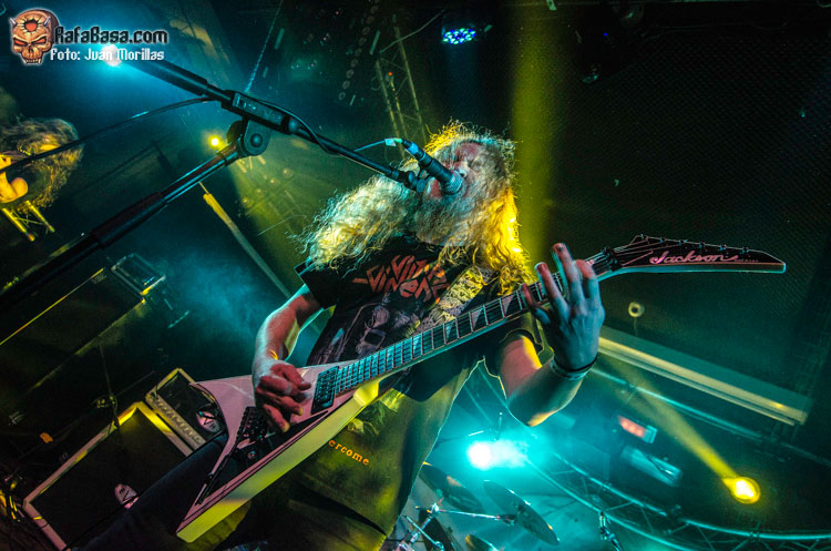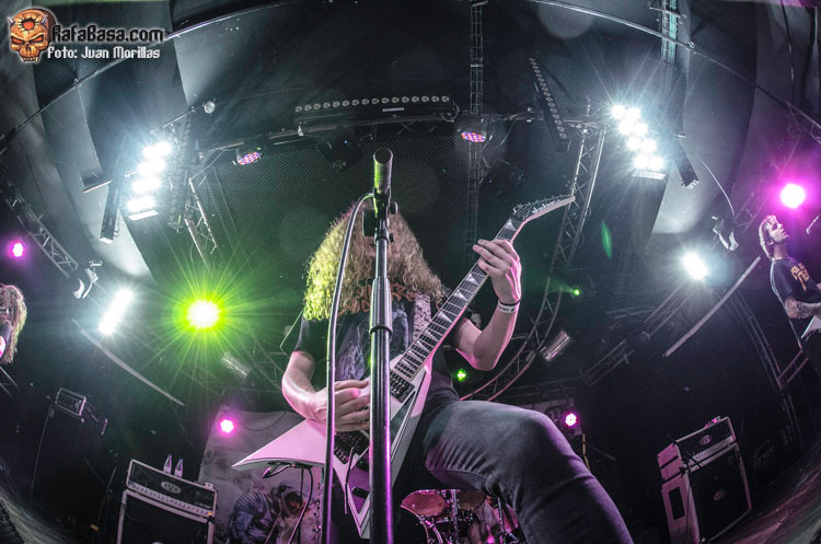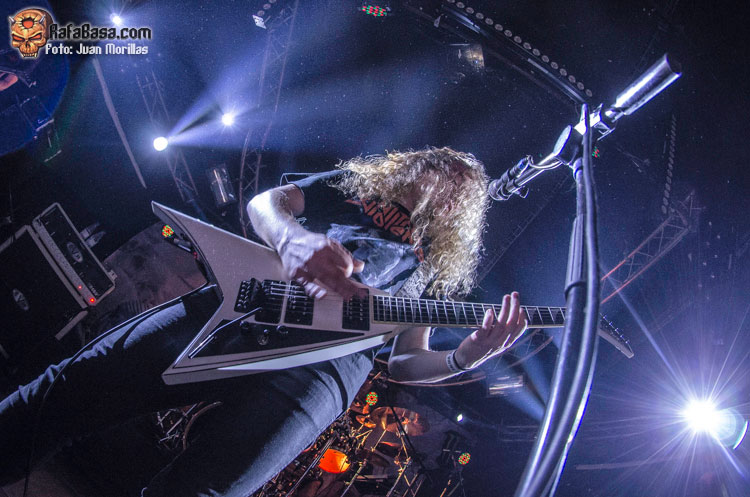 No desaprovecharon la ocasión para darle gracias a su público, quienes en mayoría habían contribuido adquiriendo el combo de entrada más disco. A renglón seguido, «Vomitive» sería una de las más celebradas. «Of Men and Tyrants» -¡qué pedazo de tema!- que junto a «End Man» del último formaría un poderoso combo. «Fresh Pleasure» dedicada al espumoso y delicioso licor daría paso a «Give ‘Em War» y otro tema reciente como «Firtst World of Terror» que todos coreamos a pleno pulmón.