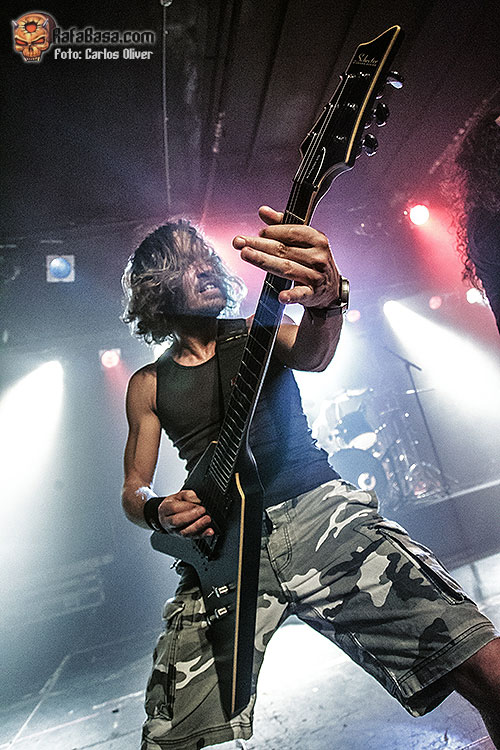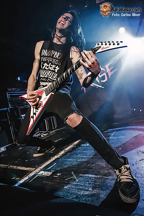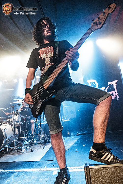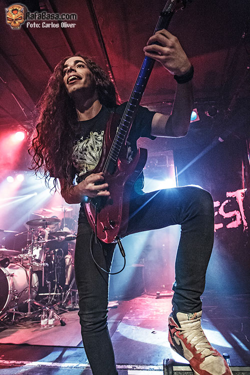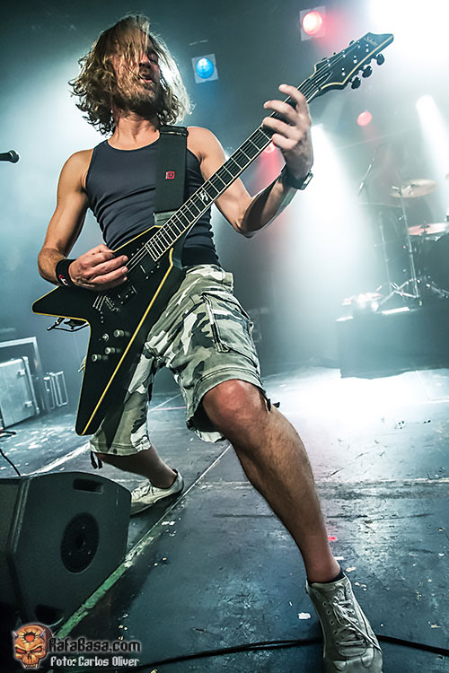Muy dinámico y especialmente participativo estuvo su bajista Dani Ramis, último en llegar a la formación pero que se ha acoplado perfectamente a sus compañeros, especialmente con el batería Javi Carrión con el que forma un tándem rítmico verdaderamente imparable. Durante toda su actuación el combo catalán fue intercalando de forma sucesiva un tema de cada uno de sus dos plásticos, de modo que completaron un repertorio de lo más variado y equilibrado, consiguiendo que temas como el desolador «Dead By The Fistful Of Violence», sonaran verdaderamente rotundos, evidenciando el estado de madurez que ha adquirido la banda a base de tocar en directo. La vuelta sobre su material más reciente estaría marcada por la pieza que prestaba título a su segundo trabajo «Rise… Then Rest», mezclando a la perfección contundencia, brutalidad y esas dobles armonías que denotan el buen gusto y la calidad técnica de ambos «hachas».