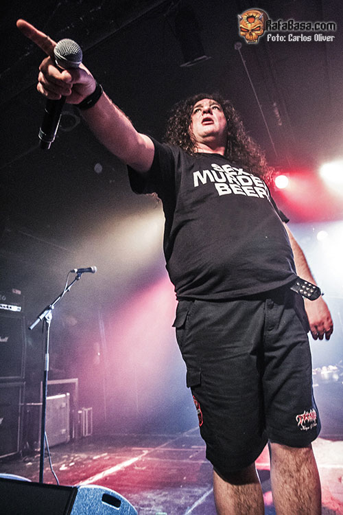 Tras la descarga de CRISIX el ambiente estaba totalmente encendido y los alemanes no quisieron dejar que la euforia reinante en la sala se esfumara. De modo que tras un rapidísimo cambio de equipo y cuando el reloj marcaba las nueve en punto de la noche, Gerre y sus muchachos asaltaban el escenario de un Razzmatazz 2 que finalmente acabó registrando una muy buena entrada. Sin ninguna clase de complejos, sin excesivos alardes escénicos pero con la clara intención de someternos a todos desde los primeros compases del show, el combo germano salía a por todas con toda una declaración de intenciones «Need Money For Beer», consiguiendo desde el primer guitarrazo de Andreas Gutjahr poner a toda la pista en movimiento para convertir el reciento en una auténtica fiesta. Como era de esperar el verdadero maestro de ceremonias fue el carismático vocalista quien no tuvo ninguna clase de complejo a la hora de pasear su oronda figura por el escenario y provocar constantemente a las primeras filas, consiguiendo que las primeras piezas de la noche «The Morning After» y esa devastadora gema que es «Zombie Attack», convirtieran la sala en un hervidero, provocando constantes «circle-pits» y un estado de excitación que se prolongaría durante el resto de la noche.