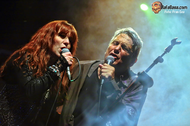Consideraciones previas aparte, expuestas sin ninguna de intención de polemizar ni pontificar, el caso es que los que estuvimos en el recinto de Embajadores pudimos disfrutar de una gran velada con el rock melódico y el A.O.R. como protagonistas. Comenzando por el breve pero sabroso aperitivo que nos dejaron GABY DE VAL y ALFONSO SAMOS, que en formato acústico interpretando dos de los temas punteros de la magnífica última entrega de THE VAL «Heading For The Surface». Simplemente con una guitarra acústica en las manos de Alfonso y con la maravillosa voz de Gaby fueron capaces de llenar de magia el escenario, primero con «Crusaders» llena de dulzura y encanto, y luego con una ralentizada revisión de la originalmente más rockera «Up To Where U Are». Buena forma de disfrutar de estas canciones en otro formato con el que, por otra parte, sus autores parecen encontrarse también muy cómodos.