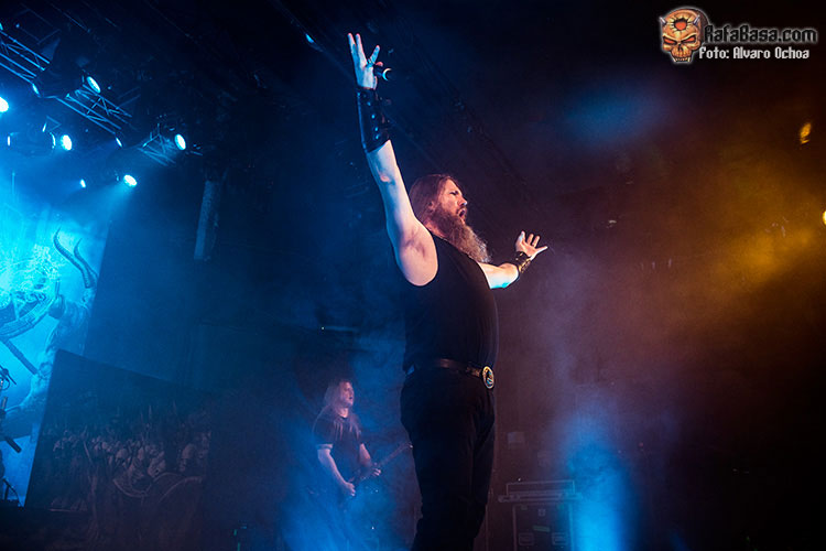 Sin ofrecernos ni un segundo de tregua llegaría "The Last Stand Of Frej", que nos adentraría en esas sonoridades más densas y correosas, conduciéndonos hacia derroteros cuasi doom metaleros, con toda la banda machacando intensamente sus instrumentos para acabar de rendir a una audiencia completamente entregada. Tras una nueva charla, el combo sueco volvería a centrar su objetivo en su plástico de 2008, "Twilight Of The Gods", recabando nuestra participación para dar ese toque grandilocuente a los imponentes coros de "Guardians Of Asgaard", que nos dejaría la imagen de un exultante vocalista golpeándose el pecho complacido con nuestra entrega.