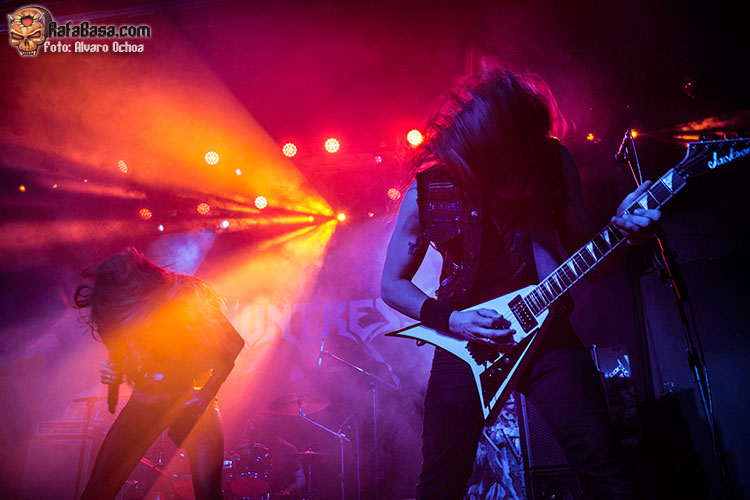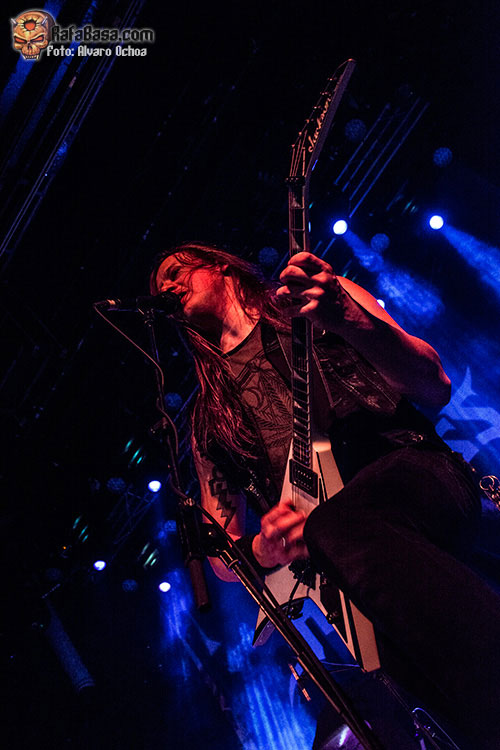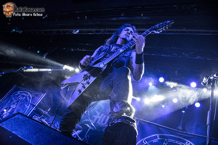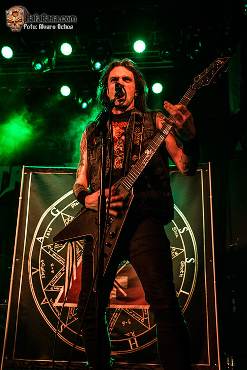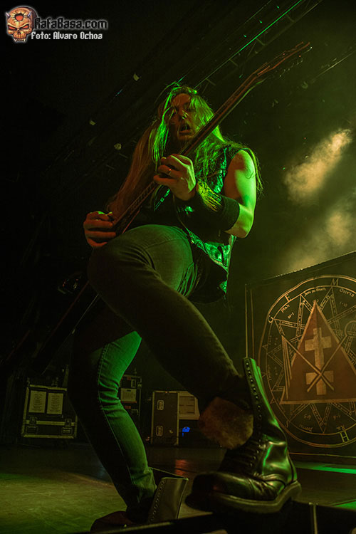 Tampoco faltarían a lo largo de su actuación las atmósferas más oscuras y demoniacas contenidas en "Hellblazer", que sumergía a banda y público en una intensa sesión de "headbanging", con el cuarteto pisando a fondo el acelerador para desatar la euforia entre las primeras filas. Ese toque "old school", que tanto gusta a sus seguidores, quedaría plasmado a lo largo de "Scavengers Of Mercy", con las guitarras batiéndose en un incendiario intercambio de fraseos que provocaría los primeros "circle-pits" de la velada.